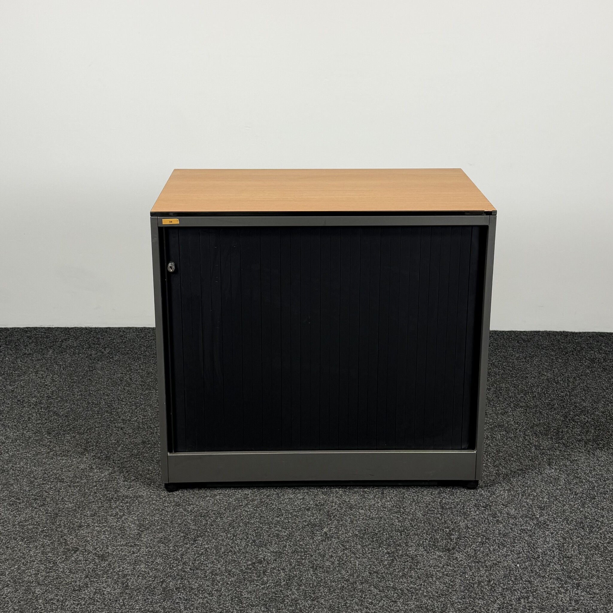 De Ahrend archiefkast is een praktische en compacte opbergoplossing voor kantoor. De kast is uitgevoerd in grijs met een zwarte roldeur en een houten topblad. Voorzien van één in hoogte verstelbaar legbord, ideaal voor het overzichtelijk opbergen van documenten en kantoorbenodigdheden.