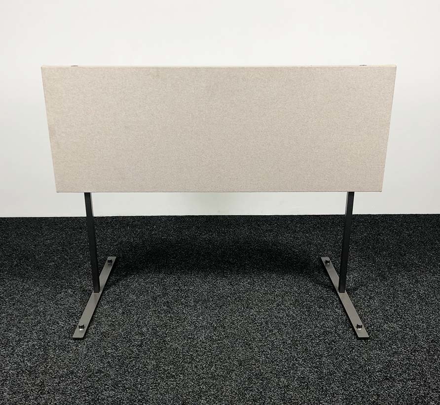 Bevorder de akoestiek tussen een tweetal bureaus met dit staande tussenpaneel, voorzien van beige wolvilt bekleding. Het paneel heeft een totale breedte van 200 centimeter en een dikte van 5 centimeter.