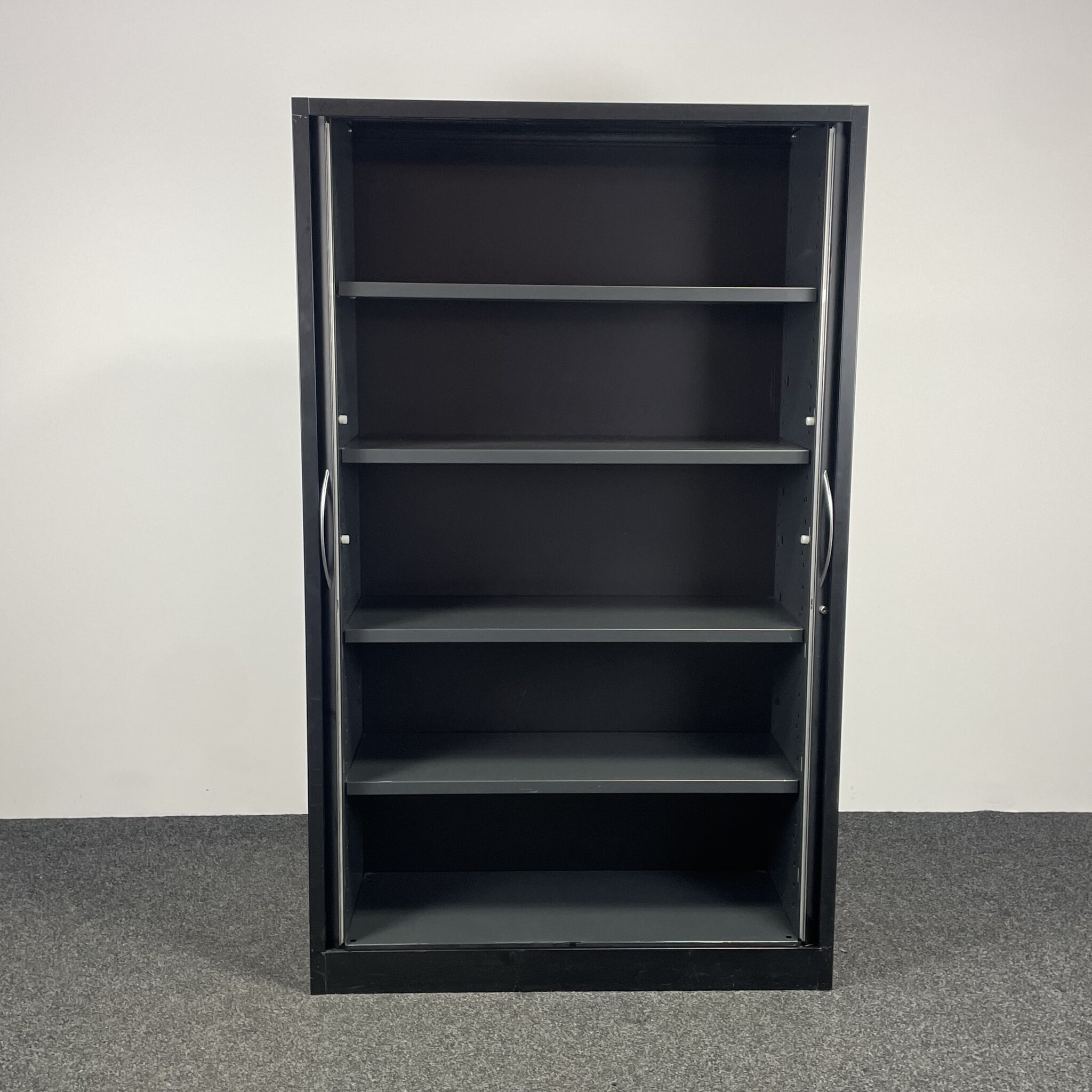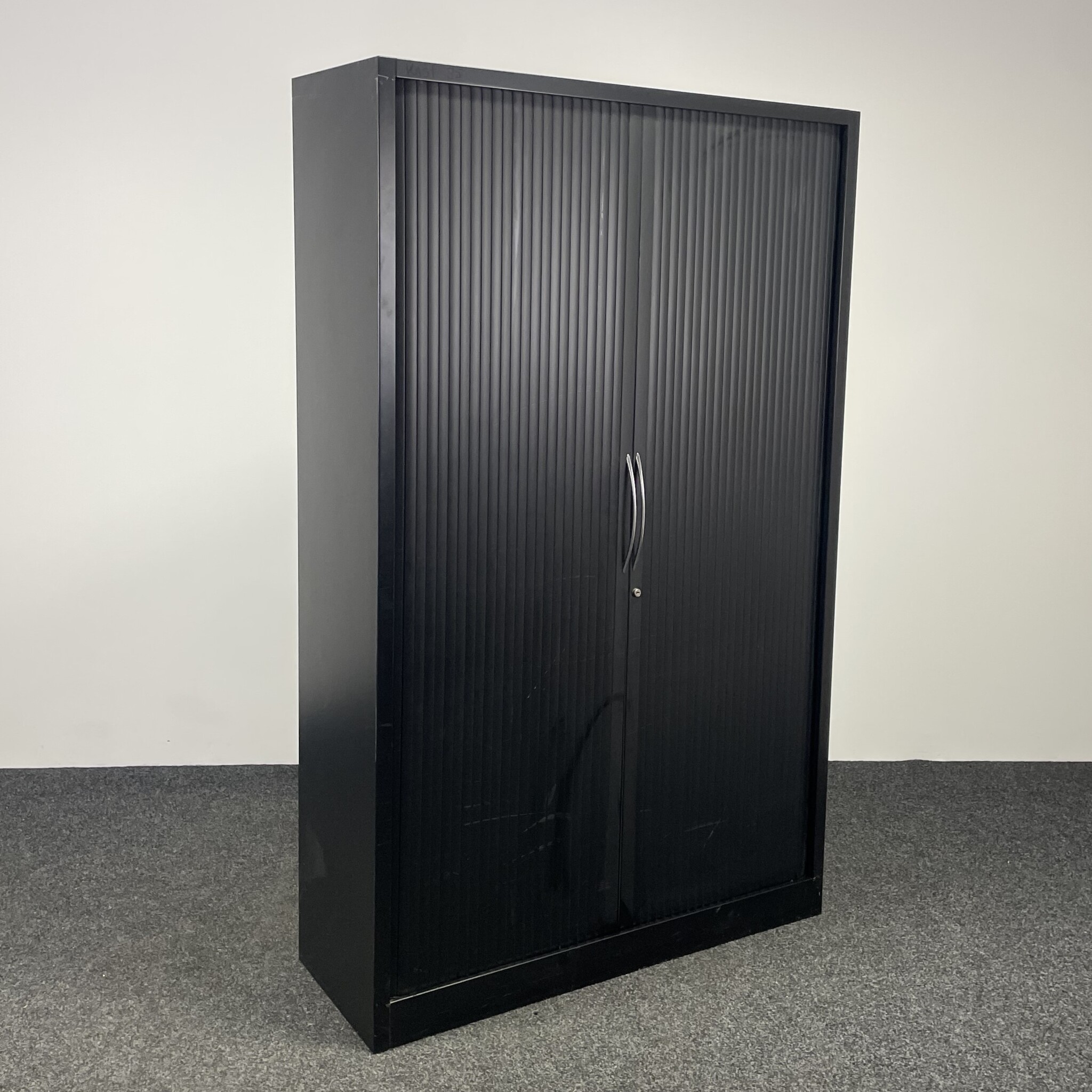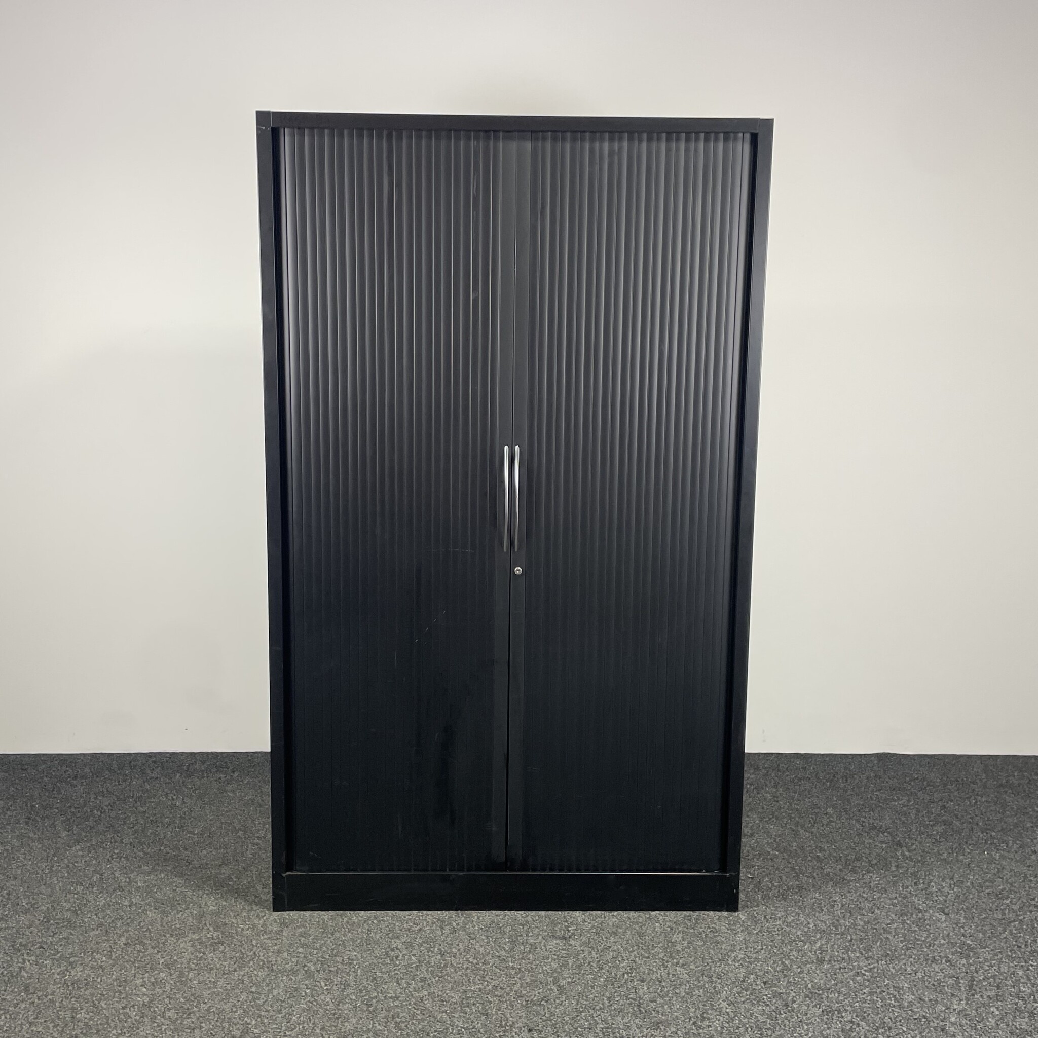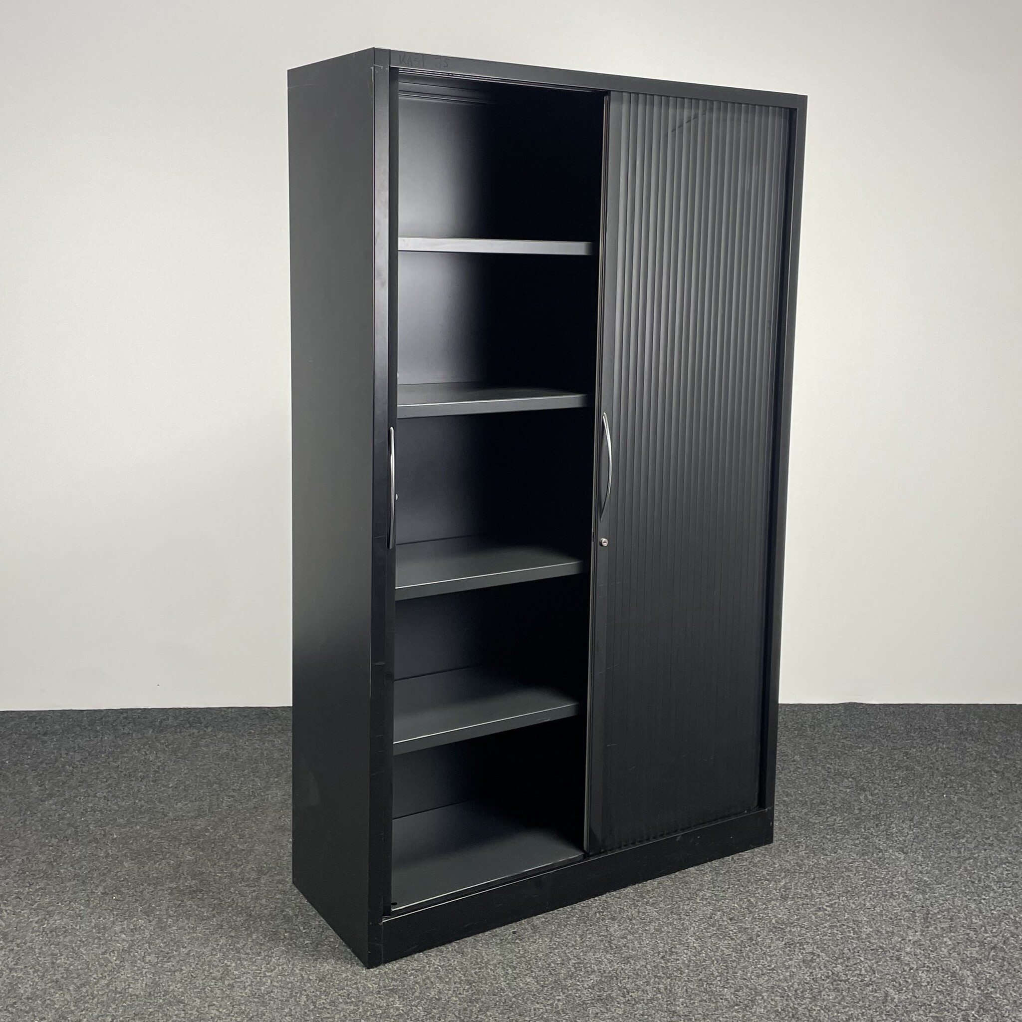 Deze zwarte archiefkast is een robuuste en stijlvolle opbergoplossing met een stalen ombouw en kunststof deuren. Voorzien van twee chromen handvatten voor een moderne uitstraling. Ideaal voor het opbergen van dossiers en materialen in kantoren, werkruimtes of archieven.
