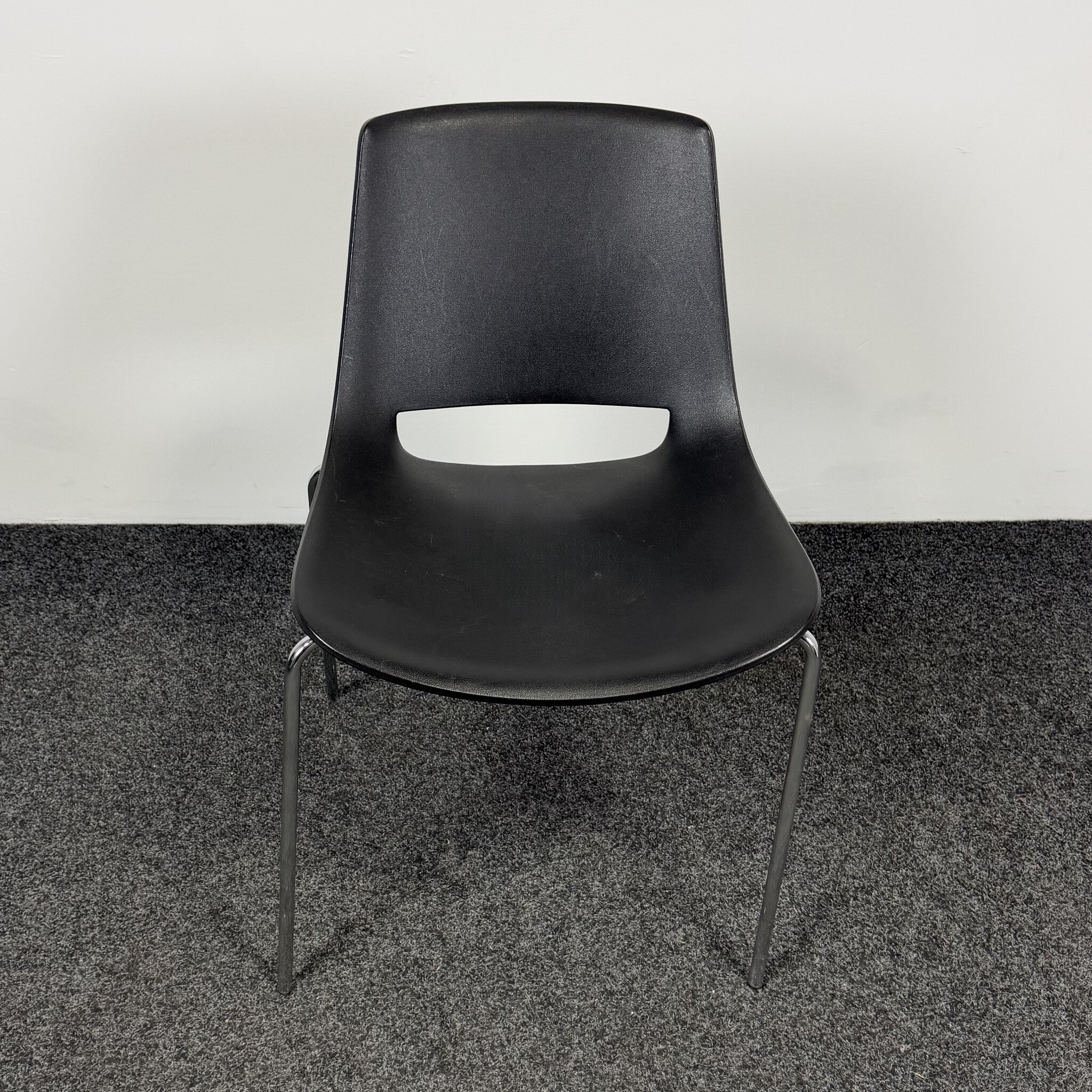 De Arper Palm stoel in het zwart, ontworpen door Lievore Altherr Molina, is een stijlvolle en comfortabele designstoel. De stoel is voorzien van een comfortabele zitting van polyethyleen en een stevig chromen onderstel. Deze gebruikte stoel is geschikt als vergaderstoel, kantinestoel of designstoel in kantoor- en horecaruimtes.