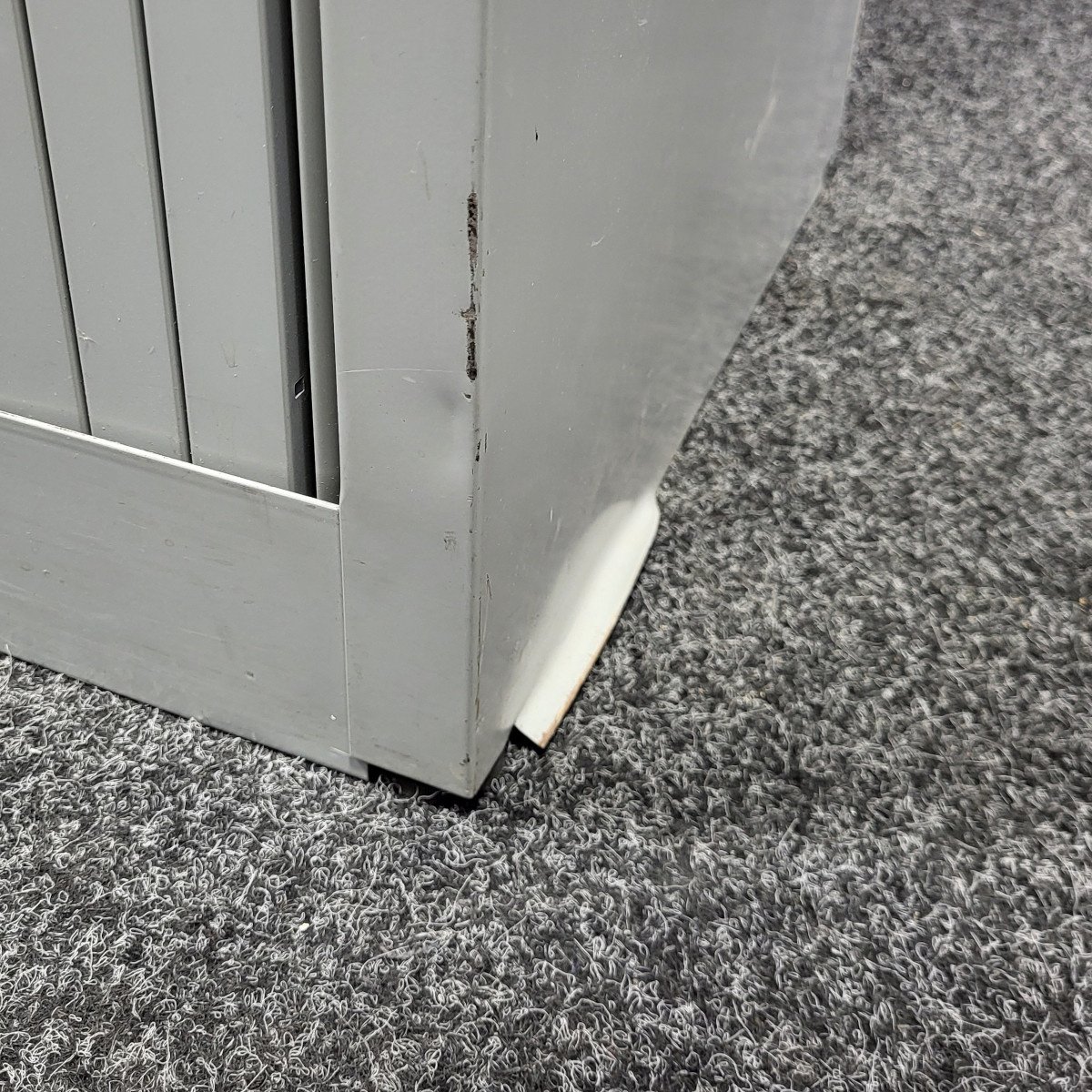 Gebruikte grijze, stevige volledig stalen Aspa archiefkast. De kast heeft duidelijke gebruikssporen, maar is nog prima te gebruiken voor een garage of schuur. Deze Aspa kast heeft 4 verstelbare legborden.