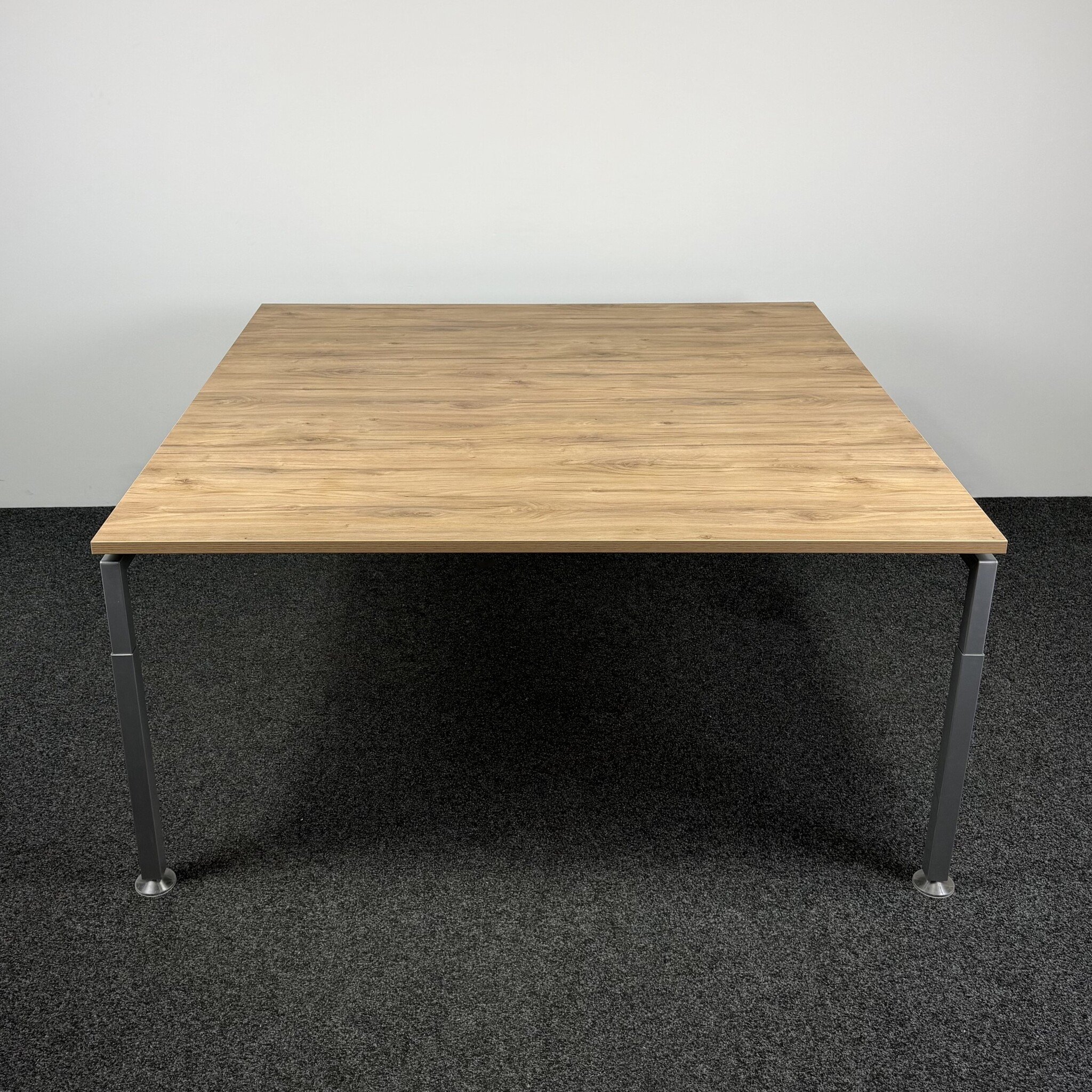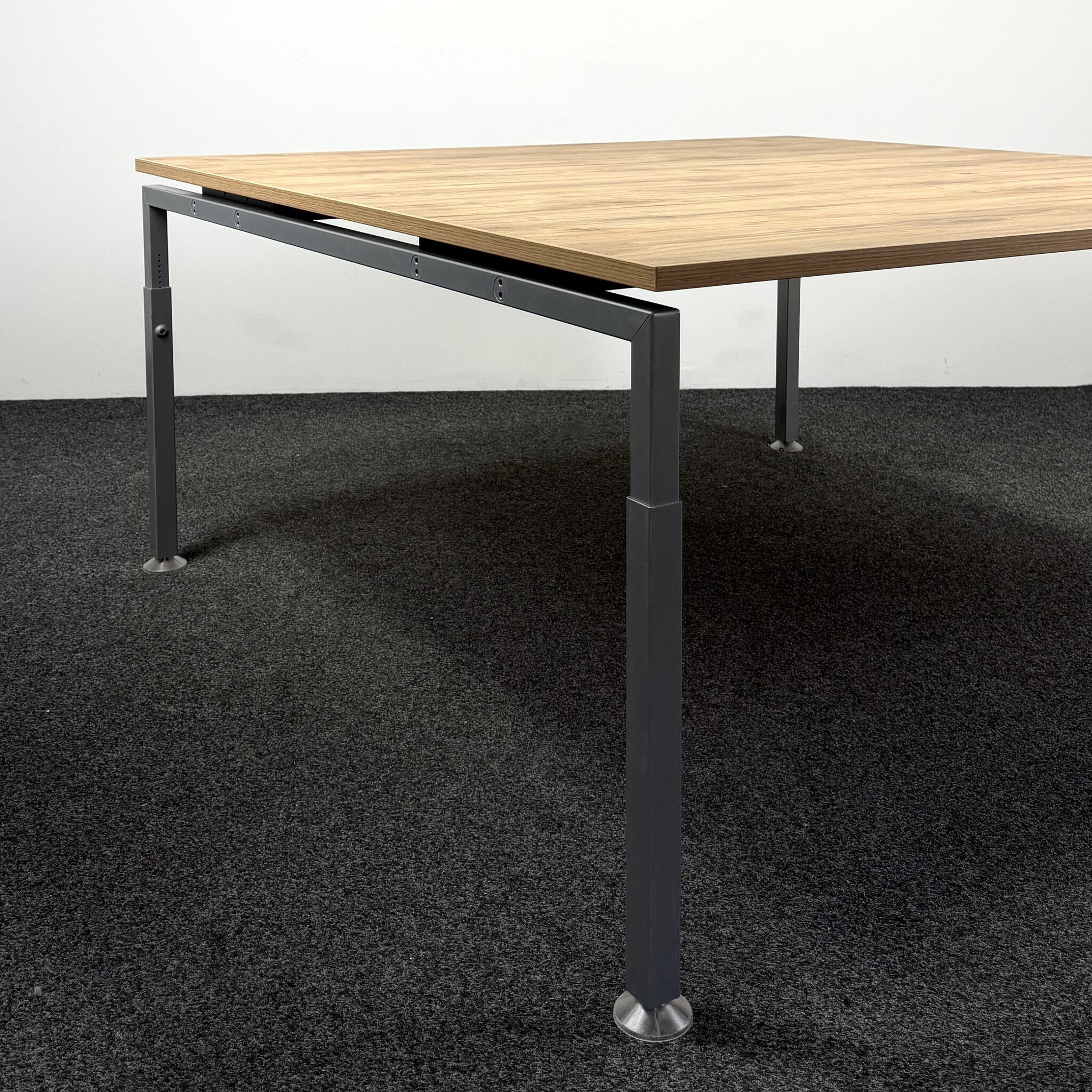 De Aspa vergadertafel van 160 x 160 cm is een ruime en praktische tafel voor overleg en samenwerking. Het nieuwe vierkante blad is leverbaar in diverse kleuren, passend bij elk interieur. Het aluminium onderstel zorgt voor een moderne uitstraling en is in hoogte verstelbaar met een inbus. Een duurzame refurbished keuze voor iedere vergaderruimte.