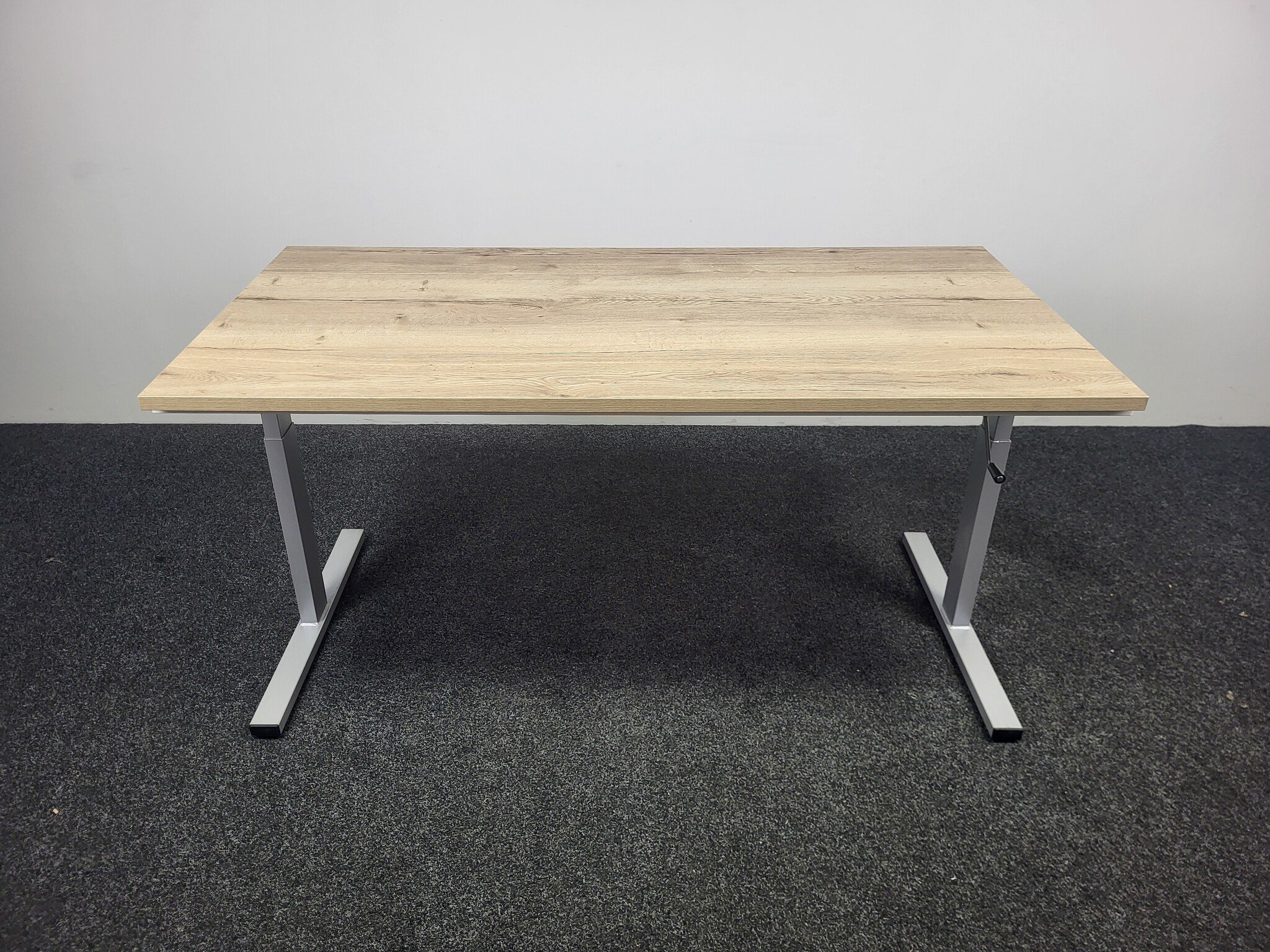Dit refurbished bureau is een voordelige keuze om zittend werk te kunnen verrichten. De hoogte is door middel van een slinger in te stellen van 62 cm tot 85 cm. Het gebruikte onderstel wordt voorzien van een nieuw blad naar keuze.