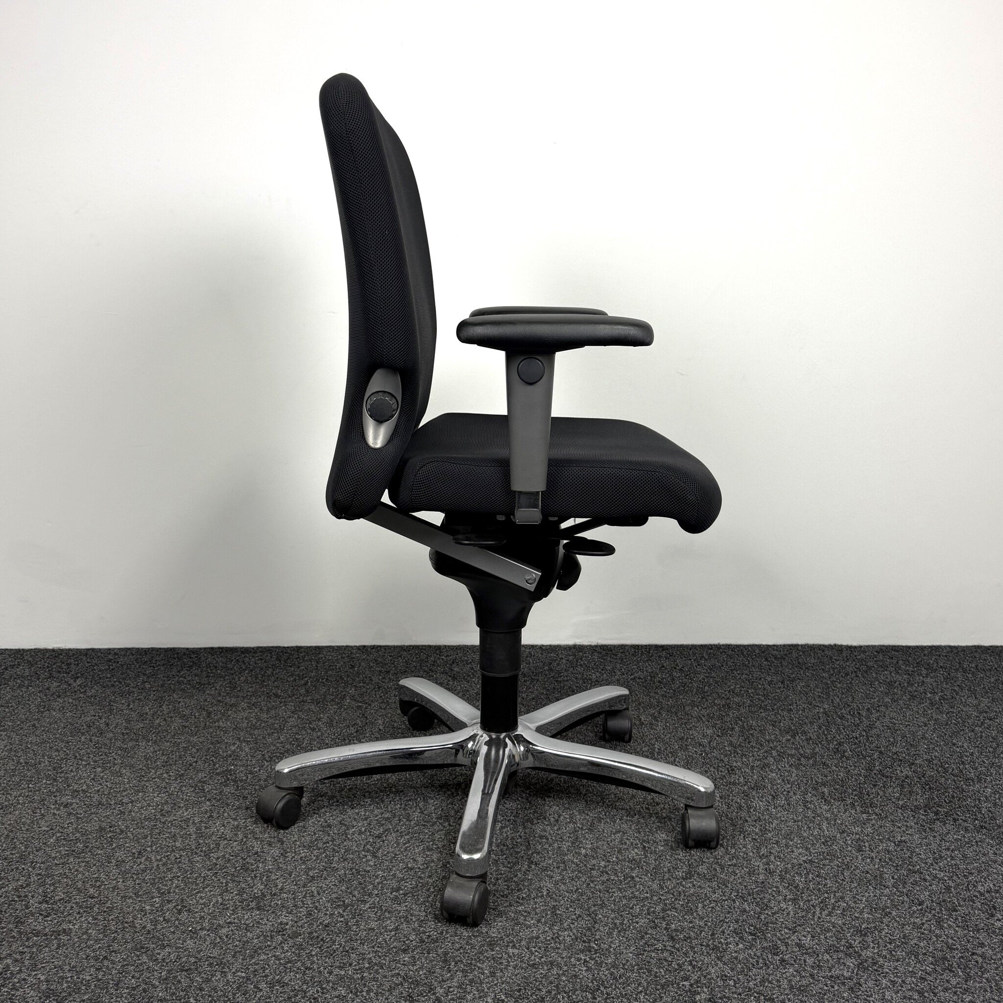 Deze gebruikte Comforto 77 bureaustoel in het zwart is een ergonomische en veelzijdige werkstoel. Voorzien van verstelbare zithoogte, zitdiepte en rughoogte, 4D armleggers en een verstelbare lendensteun. Het synchroonmechanisme met gewichtsinstelling en kantelmechaniek zorgt voor goede ondersteuning. De stoel voldoet aan de NPR 1813 norm en is geschikt voor intensief gebruik op kantoor of thuis.