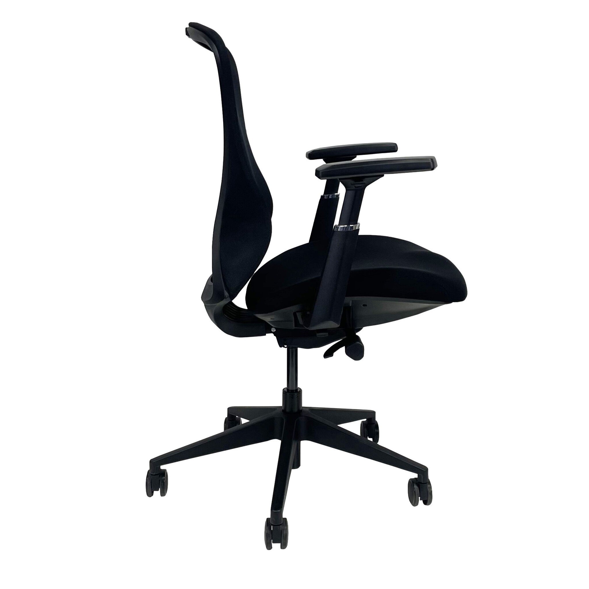 De ademende netweave rugleuning zorgt voor een aangenaam zitklimaat, terwijl de 4D armleggers eenvoudig in hoogte, breedte, diepte en draaihoek verstelbaar zijn. Het zwarte kunststof voetkruis met multifunctionele wielen garandeert stabiliteit en soepele verplaatsing.
