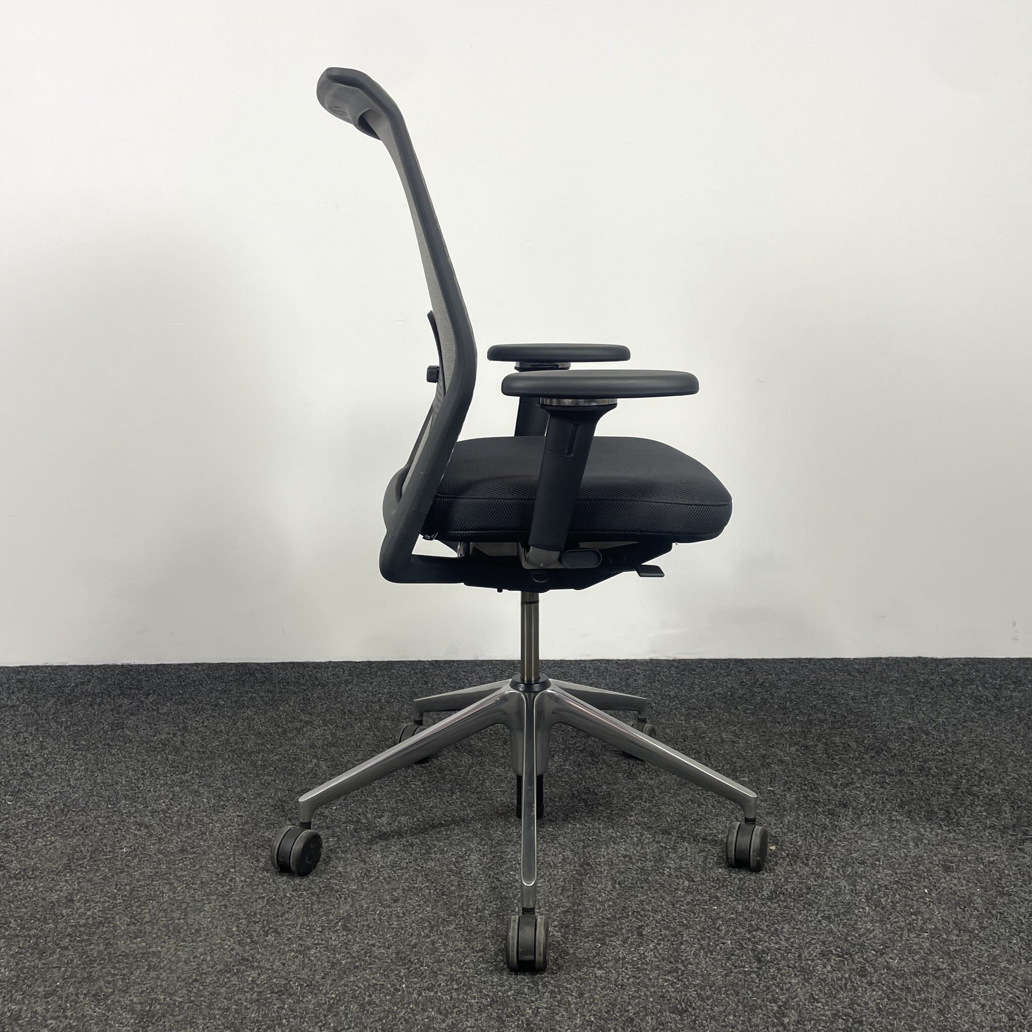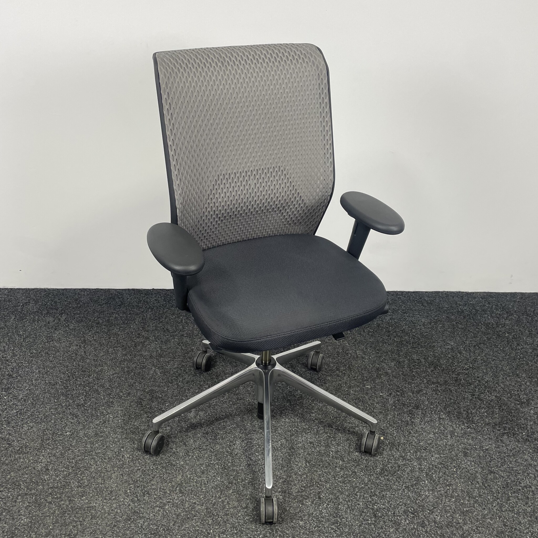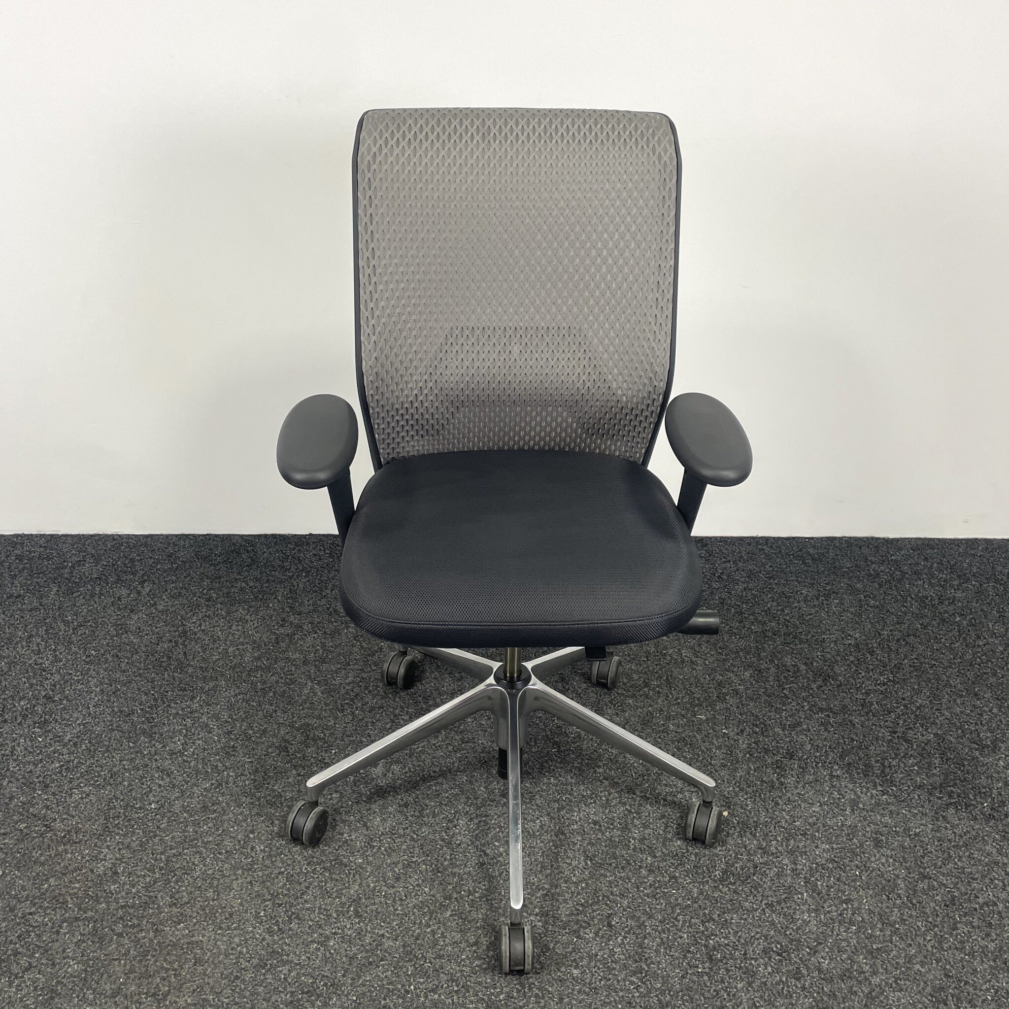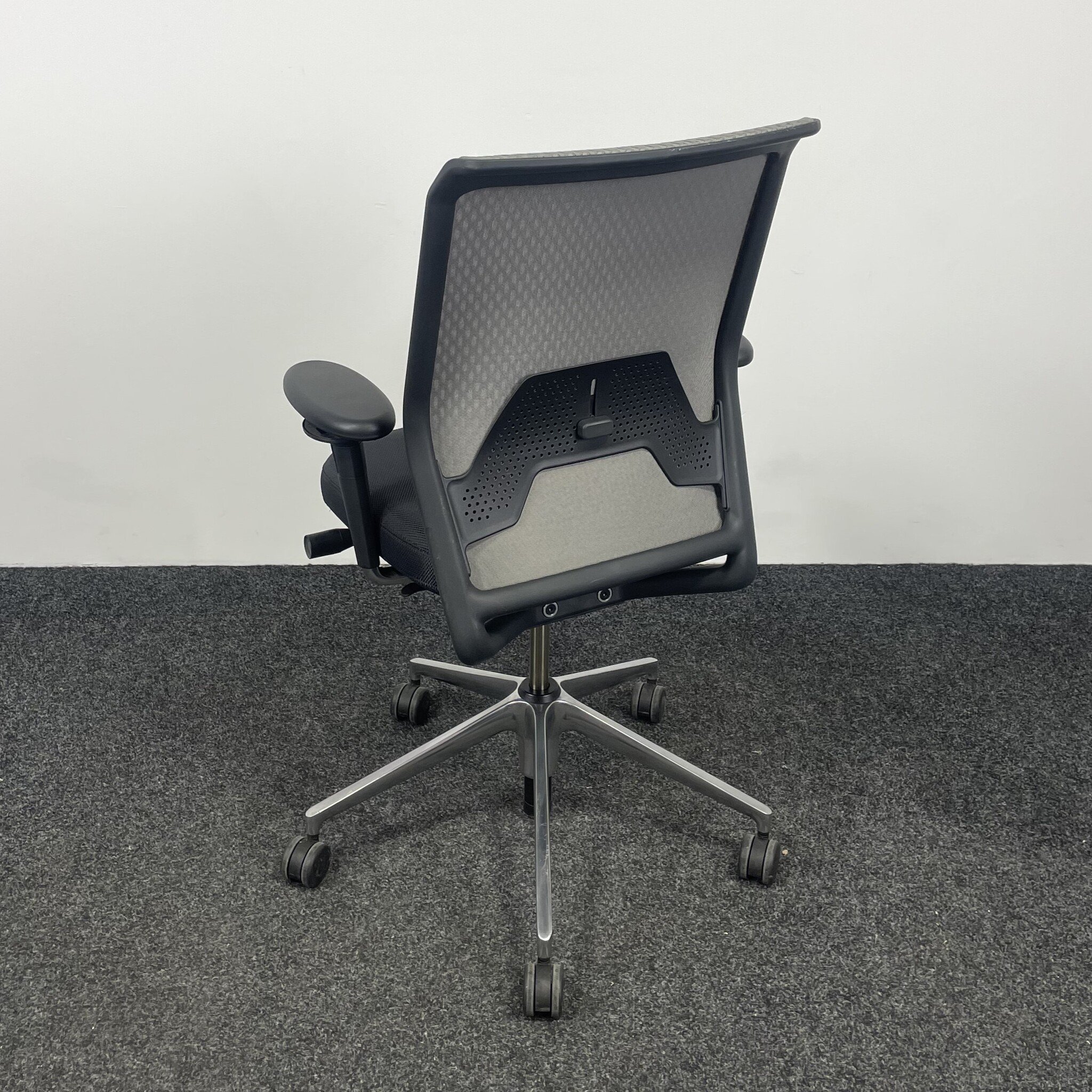 De Vitra ID Mesh bureaustoel, ontworpen door Antonio Citterio, combineert stijl met ergonomie. De grijze bekleding en het verchroomde onderstel zorgen voor een moderne uitstraling. Voorzien van verstelbare lendensteun, zitdiepte- en zithoogteverstelling, kantelmechanisme en gewichtsregeling. Deze gebruikte stoel voldoet aan de NEN 1335 norm en biedt optimaal zitcomfort.