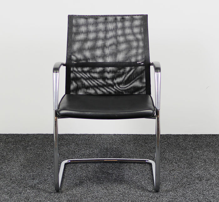 Comforto Art Collection is een degelijk conferentiestoel. Het slede model onderstel geeft een flexibele zit waardoor u een vergadering comfortabel bijwoont. De lederen zitting en de mesh rugleuning maken deze stoel daarnaast onderhoudsvriendelijk.