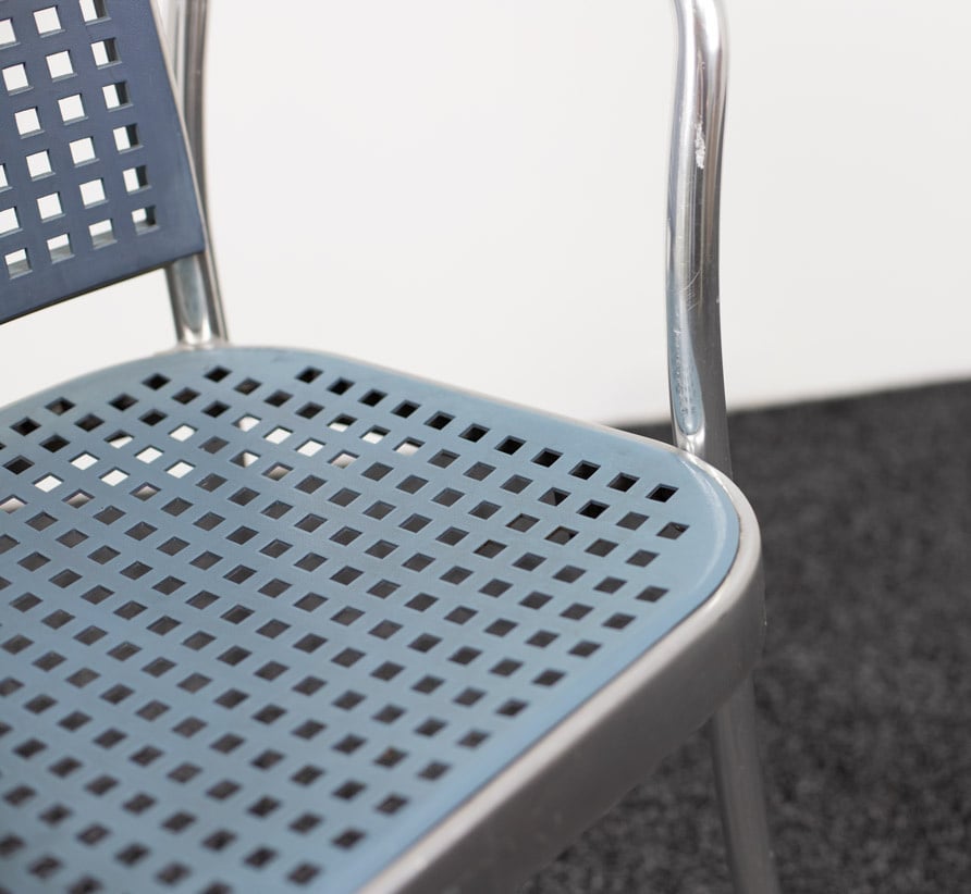 Gebruikte design stoel van DePadova die is ontworpen door Vico Magistretti. De stoel is tot 6 hoog op te stapelen en beschikt over armsteunen. De stoel is ideaal om te gebruiken als vergaderstoel of kantinestoel en heeft zich in de afgelopen 25 jaar bewezen als toonaangevende stoel. De Silver stoel is gemaakt van aluminium met een kunststof zitting en rugleuning.