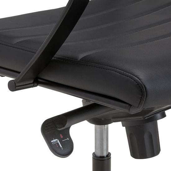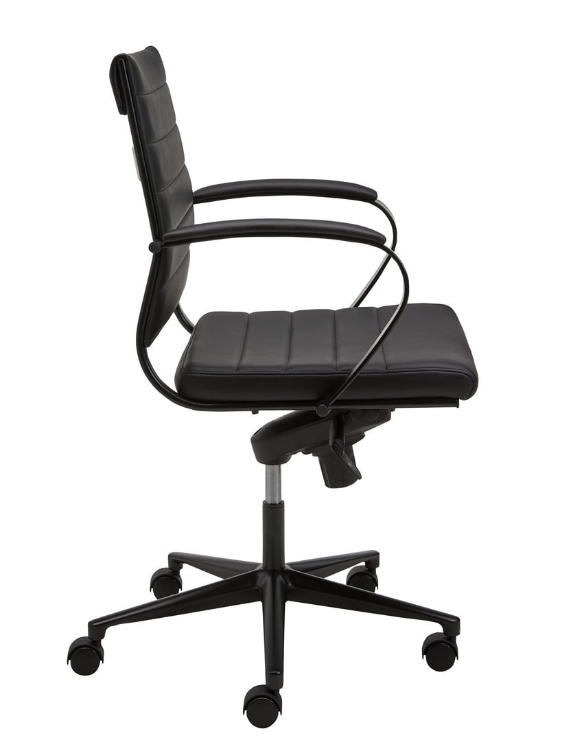 De Directiestoel Boss met lage rug uit de Boss-serie is een strakke en comfortabele bureaustoel voor dagelijks gebruik. De lage rugleuning ondersteunt de onderrug en draagt bij aan een ergonomische zithouding. De zitting en armleggers zijn bekleed met zwart kunstleer, en het zwarte voetkruis geeft de stoel een representatieve uitstraling. Dankzij het kantelmechaniek met vijf posities, de gewichtsregeling en de verstelbare zithoogte is de stoel volledig aan te passen aan de gebruiker. Voorzien van multifunctionele wielen, ideaal voor moderne kantoren en werkplekken.