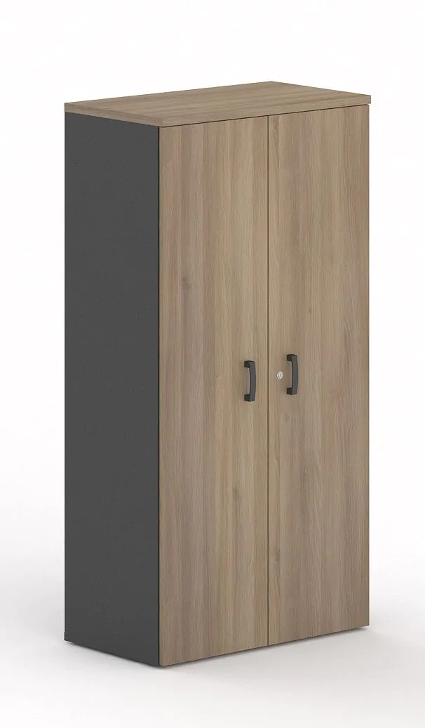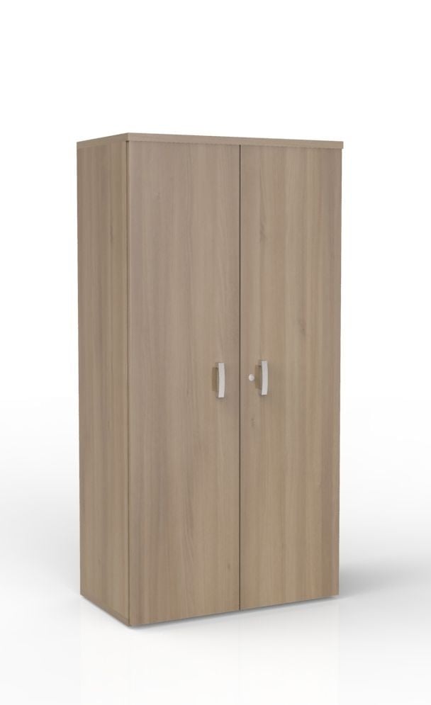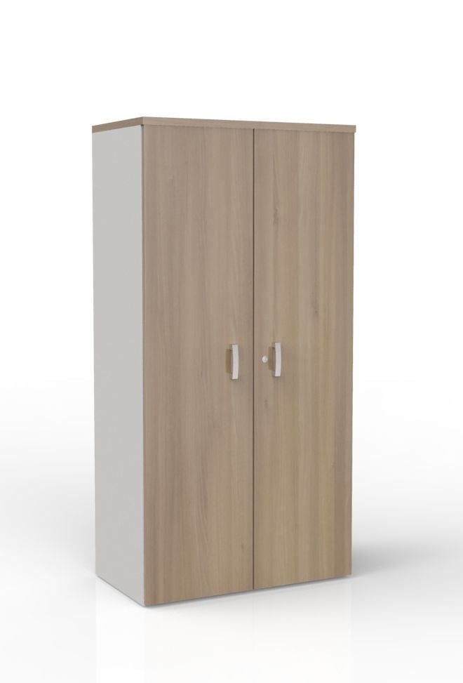 Deze melamine draaideurkast van 158 cm hoog is een praktische en stijlvolle opbergkast. Uitgerust met 4 in hoogte verstelbare legborden, een cilinderslot en strak weggewerkte scharnieren aan de binnenzijde. Gemaakt van gemelamineerd spaanplaat en leverbaar in diverse kleuren. De kast wordt volledig gemonteerd geleverd.
