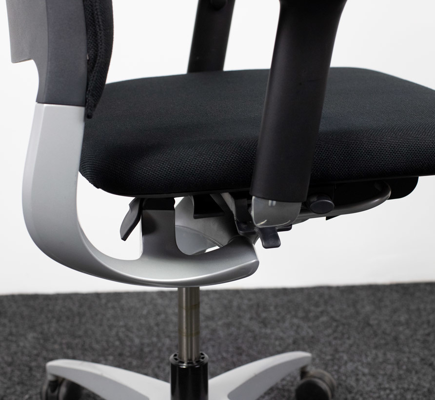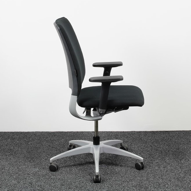 Door de synchroonmechaniek in de stoel blijft deze ondersteuning geven in verschillende posities. De zitdiepte is verstelbaar zodat zowel mensen met lange als korte benen comfortabel zitten en voldoende ondersteuning hebben. De tweedehands bureaustoel is voorzien van 4D armleggers waardoor deze in hoogte, breedte en diepte verstelbaar zijn.