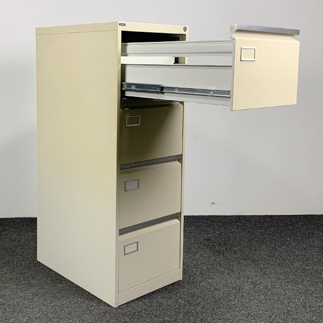 Gebruikte dossierkast van het merk Emmein. Deze stevige kast heeft een stalen ombouw, 4 uittrekladen, optioneel is er een sleutel bij te bestellen. De kast heeft wat gebruikssporen en is wat verkleurd, kan nog prima een ronde mee.
