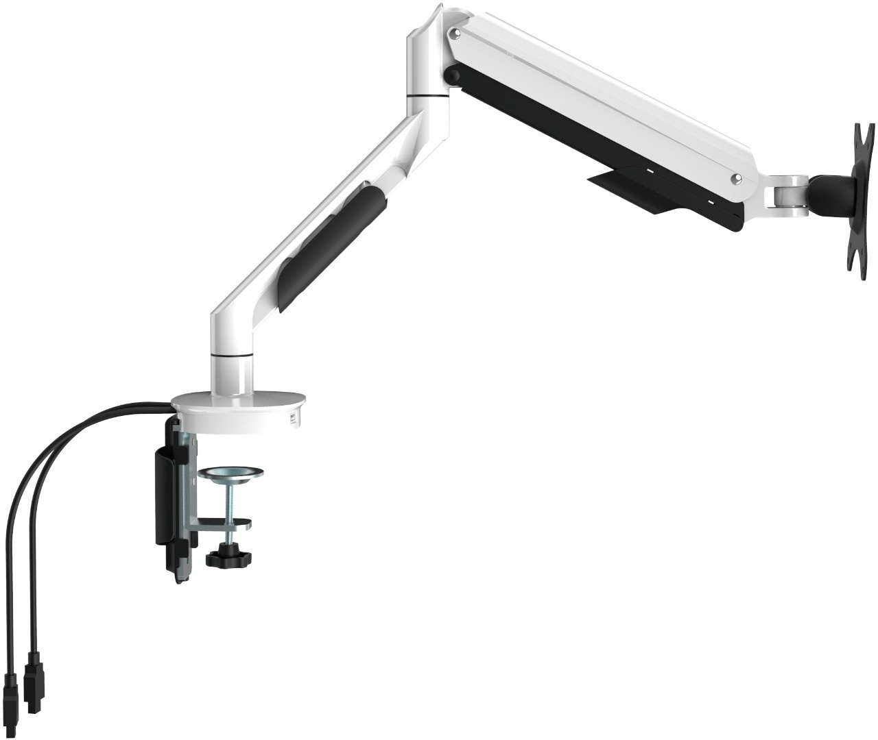 De enkele gasgeveerde monitorarm is een praktische en betaalbare oplossing voor een ergonomische werkplek. Dankzij de gaslift is het scherm eenvoudig en soepel verstelbaar. De monitorarm is voorzien van twee USB-poorten, geïntegreerd kabelmanagement en een VESA-aansluiting. Geschikt voor schermen van 17 tot 30 inch en verkrijgbaar in wit, zwart of aluminium. Een functionele keuze voor een overzichtelijke en flexibele werkplek.