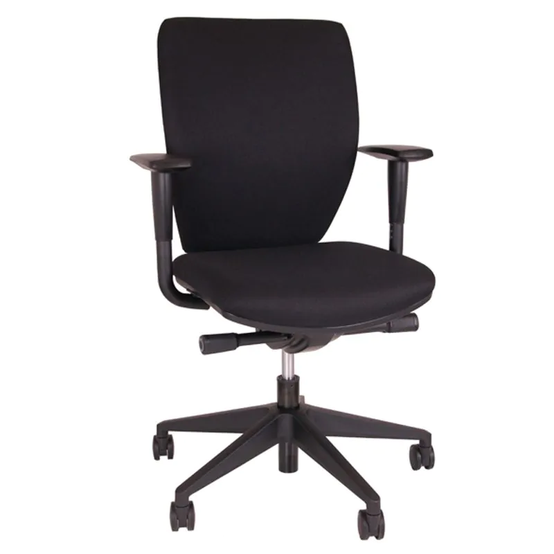De bureaustoel is uitgevoerd met een zwart kunststof voetkruis en multifunctionele wielen, geschikt voor verschillende vloeroppervlakken. Een functionele en ergonomische keuze voor kantooromgevingen waar langdurig zitten vereist is.