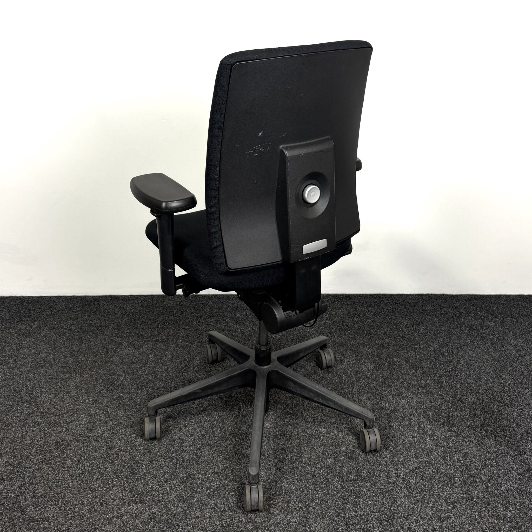 De gebruikte bureaustoel Puck in zwart is een ergonomische en veelzijdige werkstoel. Uitgevoerd met 3D armleggers, verstelbare zithoogte, zitdiepte en rughoogte. De diepte verstelbare lendensteun en het kantelmechaniek met automatische gewichtsregeling bieden comfortabele ondersteuning. Voorzien van multifunctionele wielen en geschikt voor kantoor- en thuiswerkplekken.