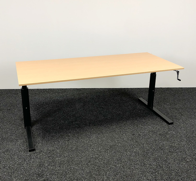 A-kwaliteit slinger bureau van Gispen. Zeer eenvoudig in hoogte verstelbaar door middel van het ronddraaien van de slinger, de slinger is tevens uittrekbaar en inschuifbaar. Het bureau beschikt over een zwart kleurig onderstel en een blad naar keuze.