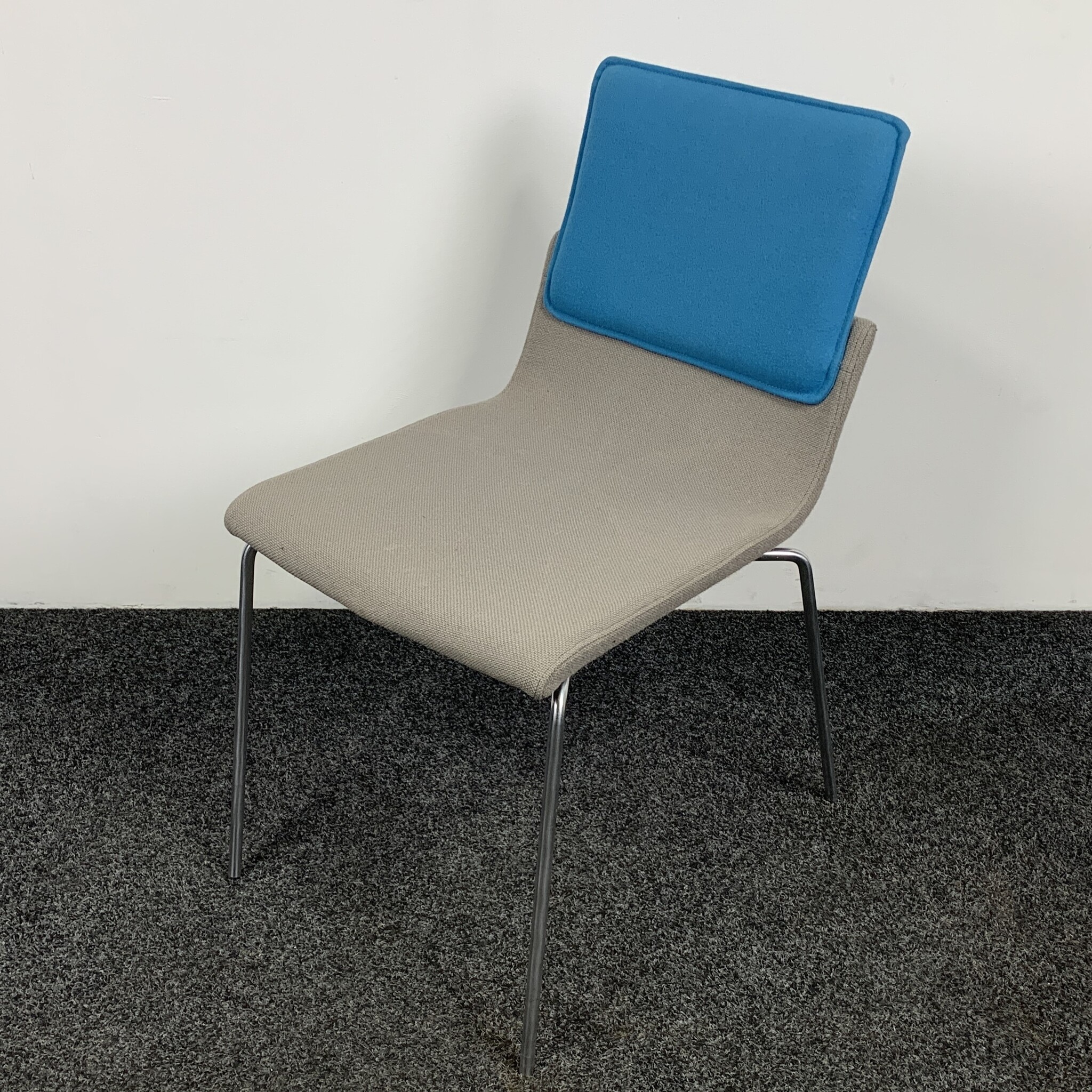 De Gispen Triennial vergaderstoel is een comfortabele en tijdloze designstoel van hoge kwaliteit. Deze gebruikte stoel heeft een gestoffeerde zitting in blauw en grijs, een stabiel 4-poot onderstel en is stapelbaar. Dankzij het uitstekende zitcomfort is deze Triennial stoel ideaal voor vergaderruimtes, kantoren of opleidingsruimtes.