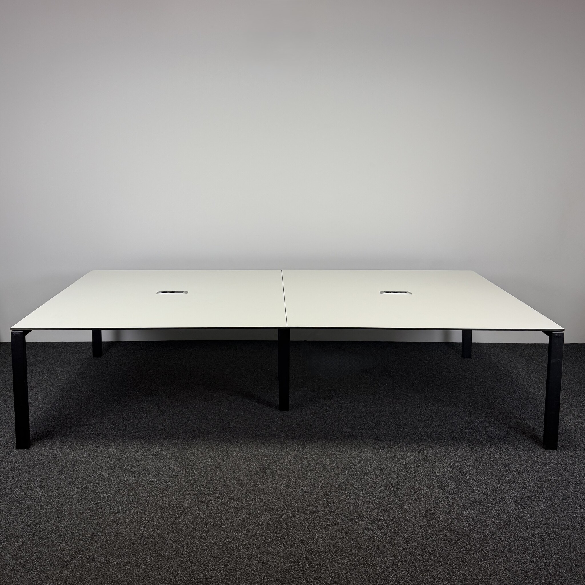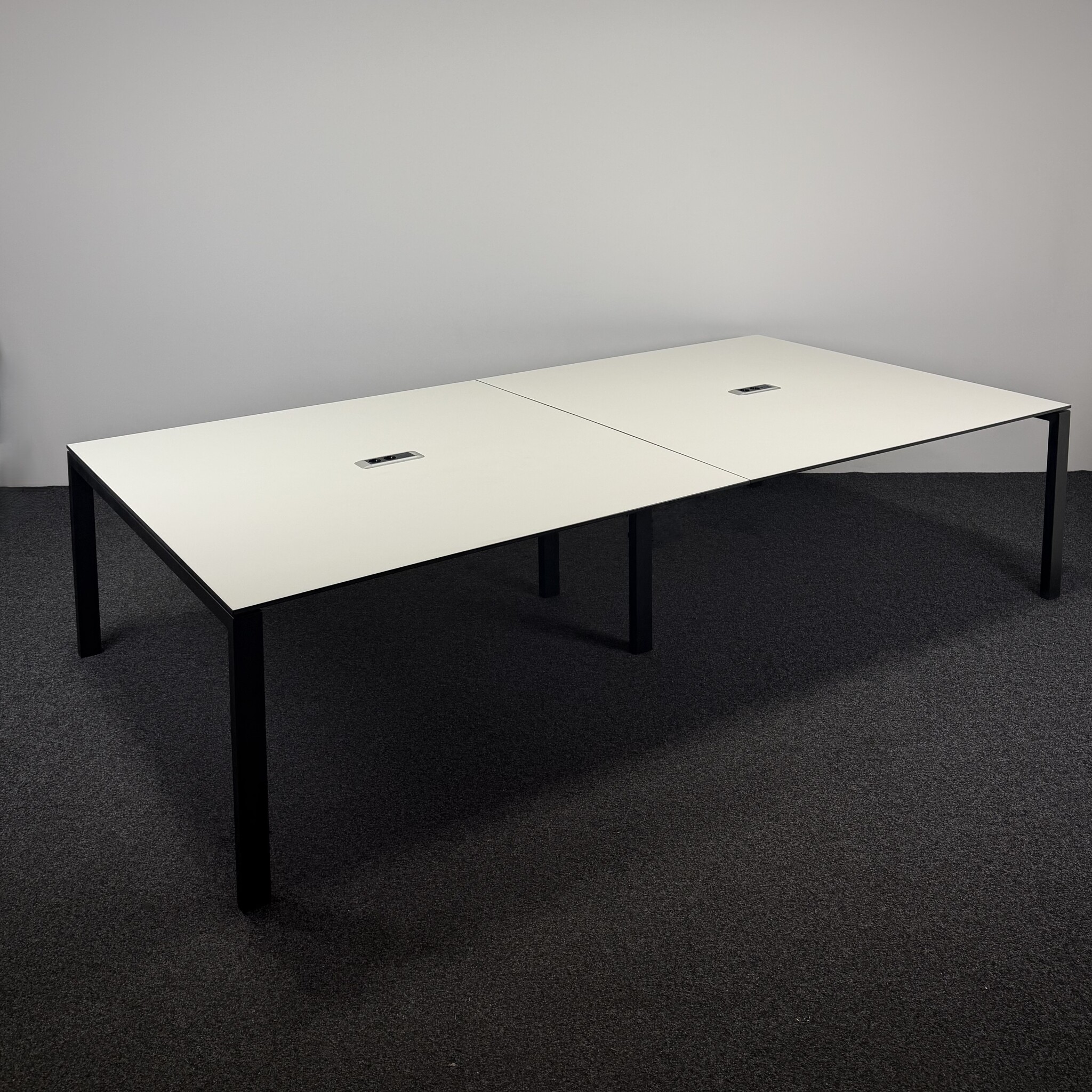 De Gispen vergadertafel van 320 x 160 cm is een ruime en professionele tafel voor overleg- en vergaderruimtes. Het witte blad in combinatie met het zwarte onderstel zorgt voor een moderne en tijdloze uitstraling. Voorzien van twee ingebouwde stopcontactdozen, ideaal voor laptops en andere apparatuur. Deze gebruikte vergadertafel heeft een vaste hoogte en is perfect geschikt voor intensief kantoorgebruik.