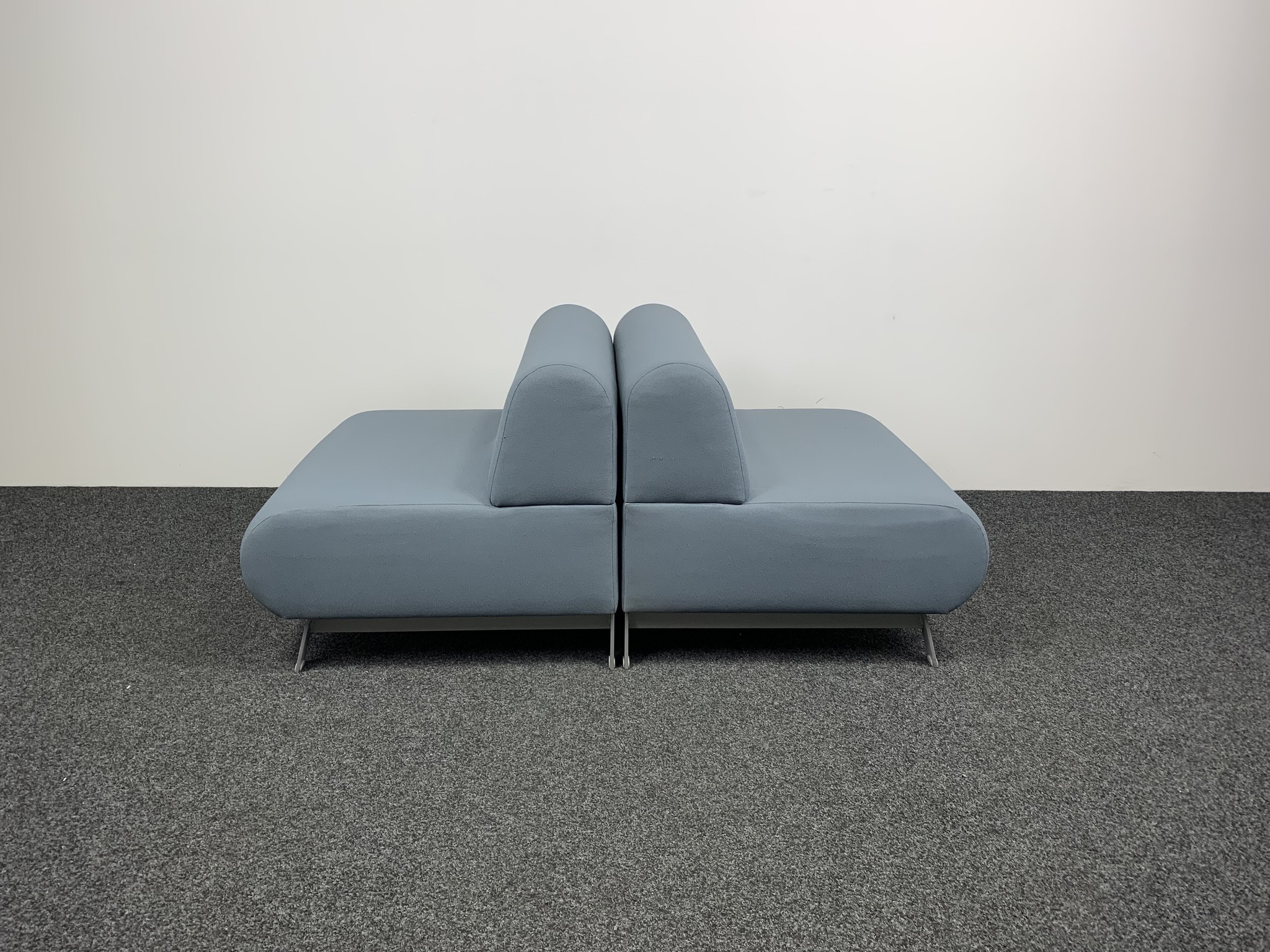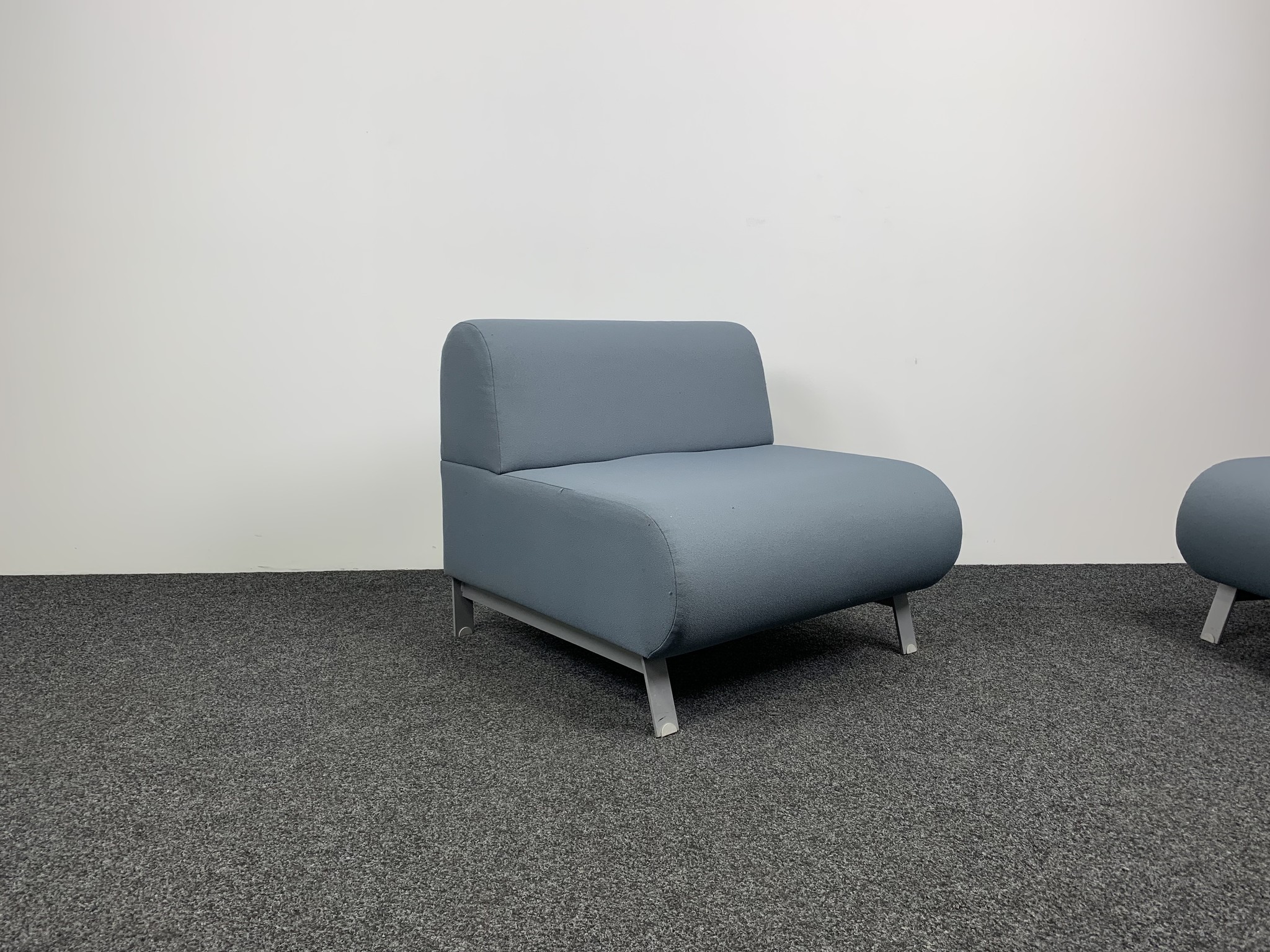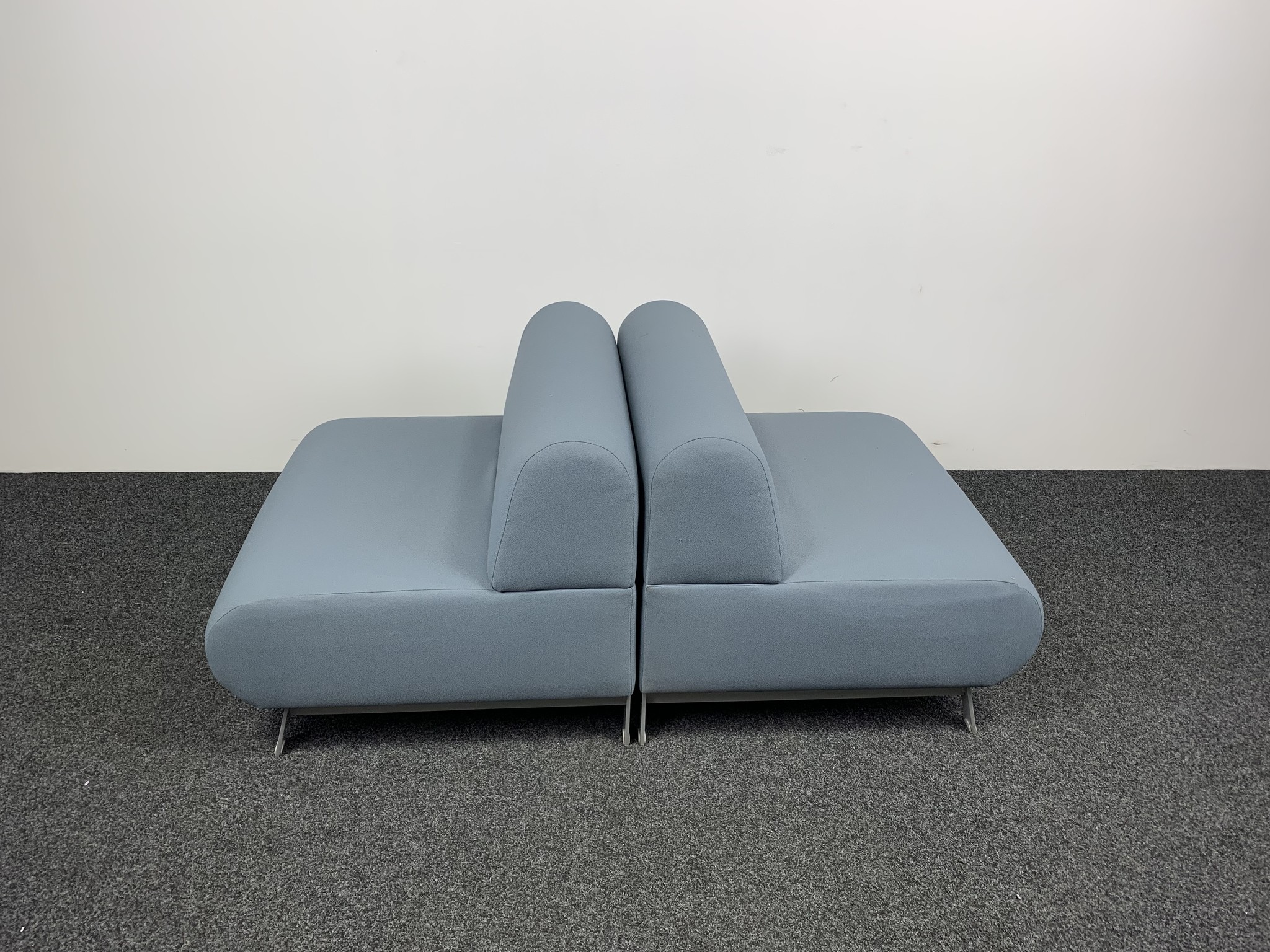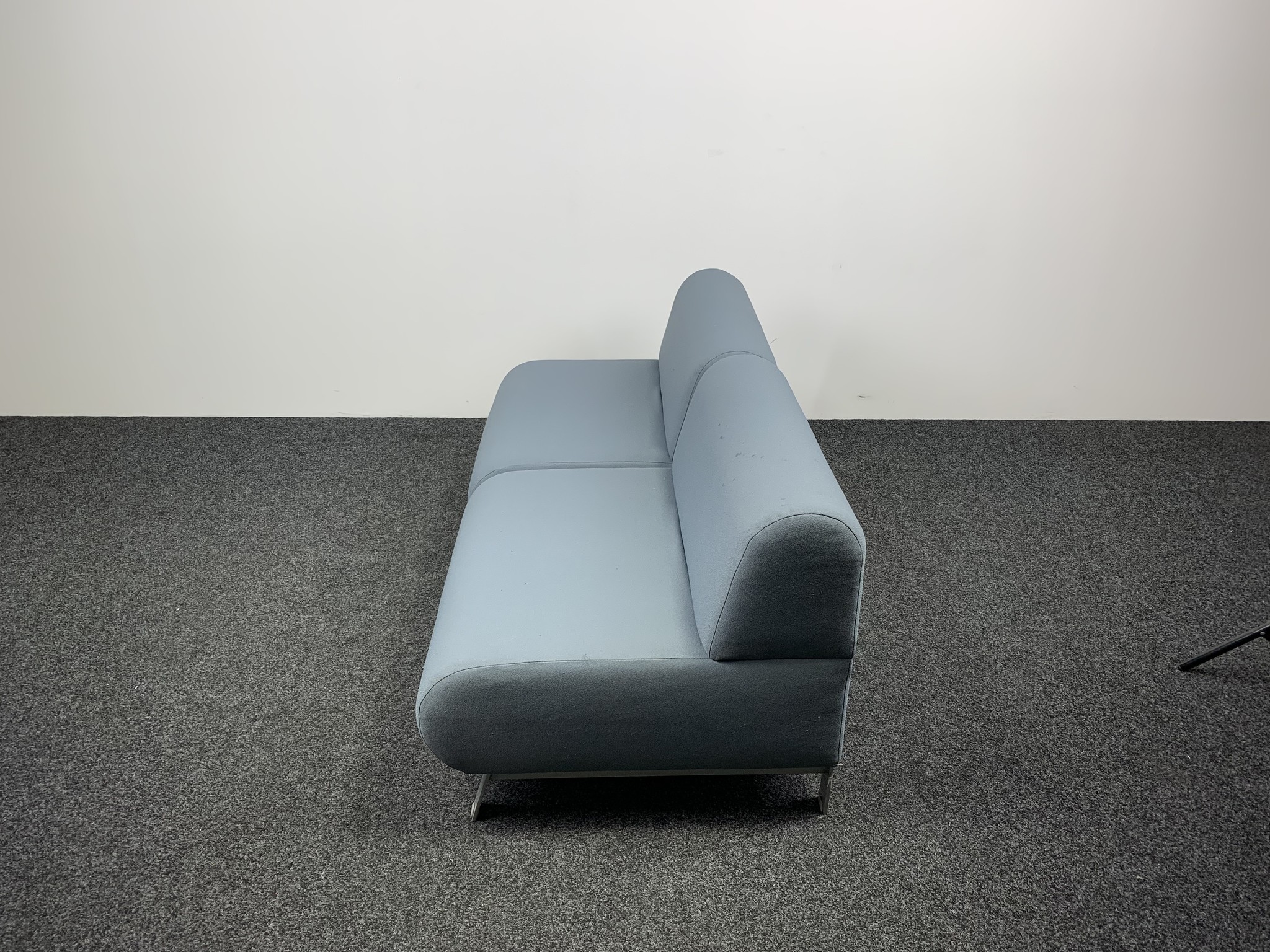 Deze gebruikte bank heeft een grijs /blauwe stof. De bank is makkelijk te verplaatsen en zit comfortabel waardoor is hij te gebruiken is voor meerdere doeleinden. Ze zijn te koop als set of als enkel stuk. De banken bevatten wel lichte gebruikssporen.