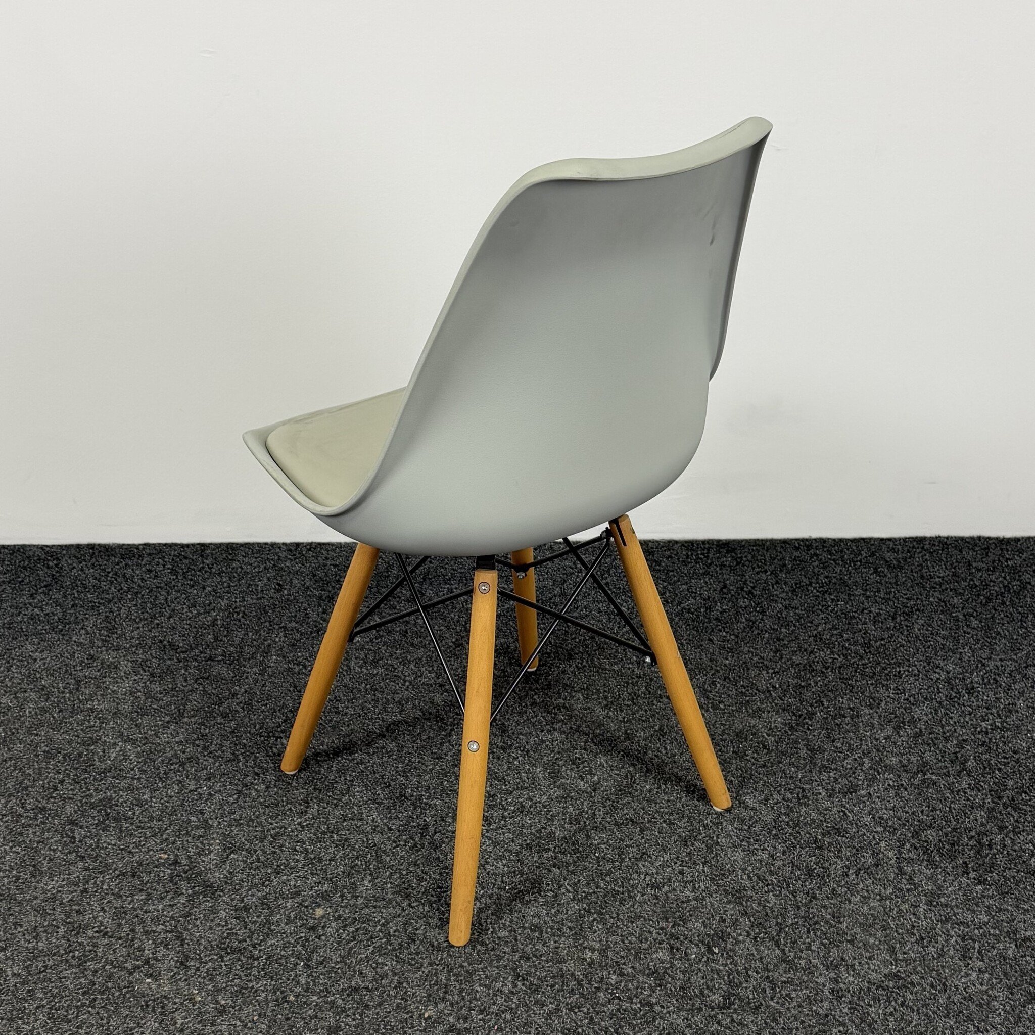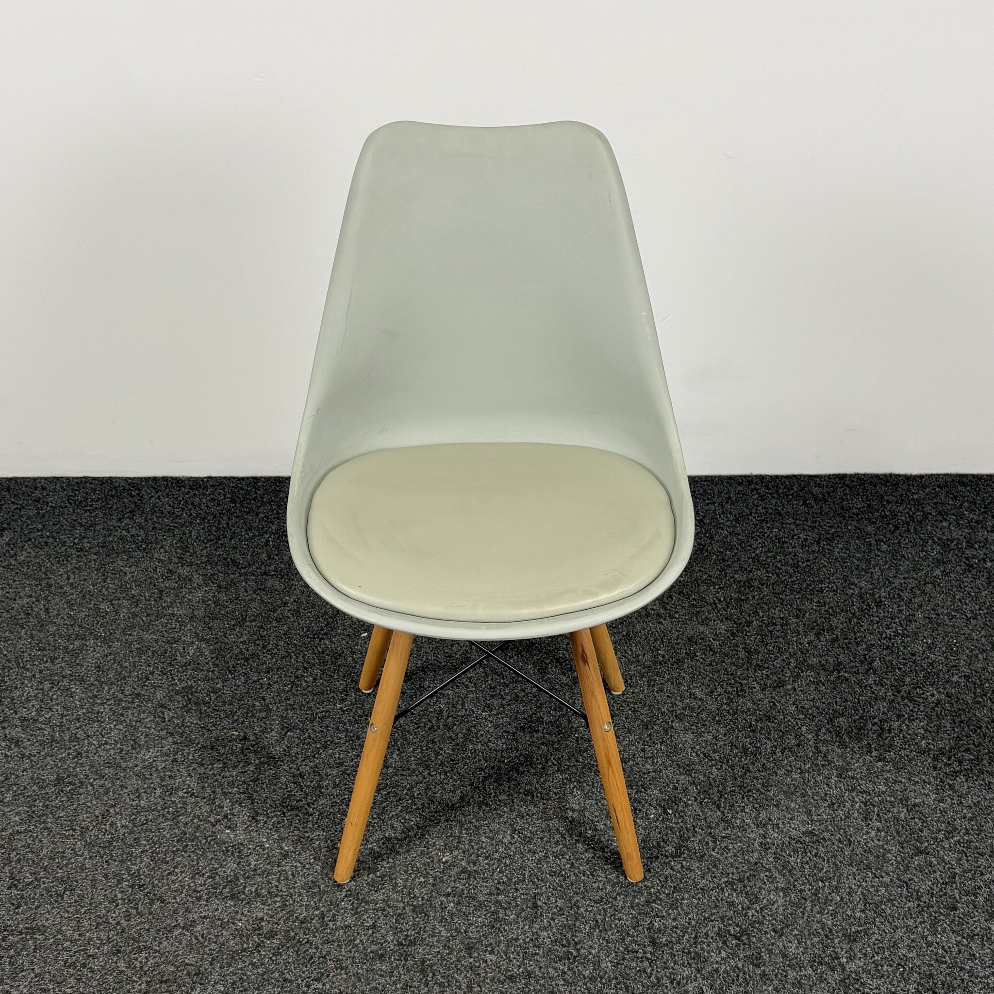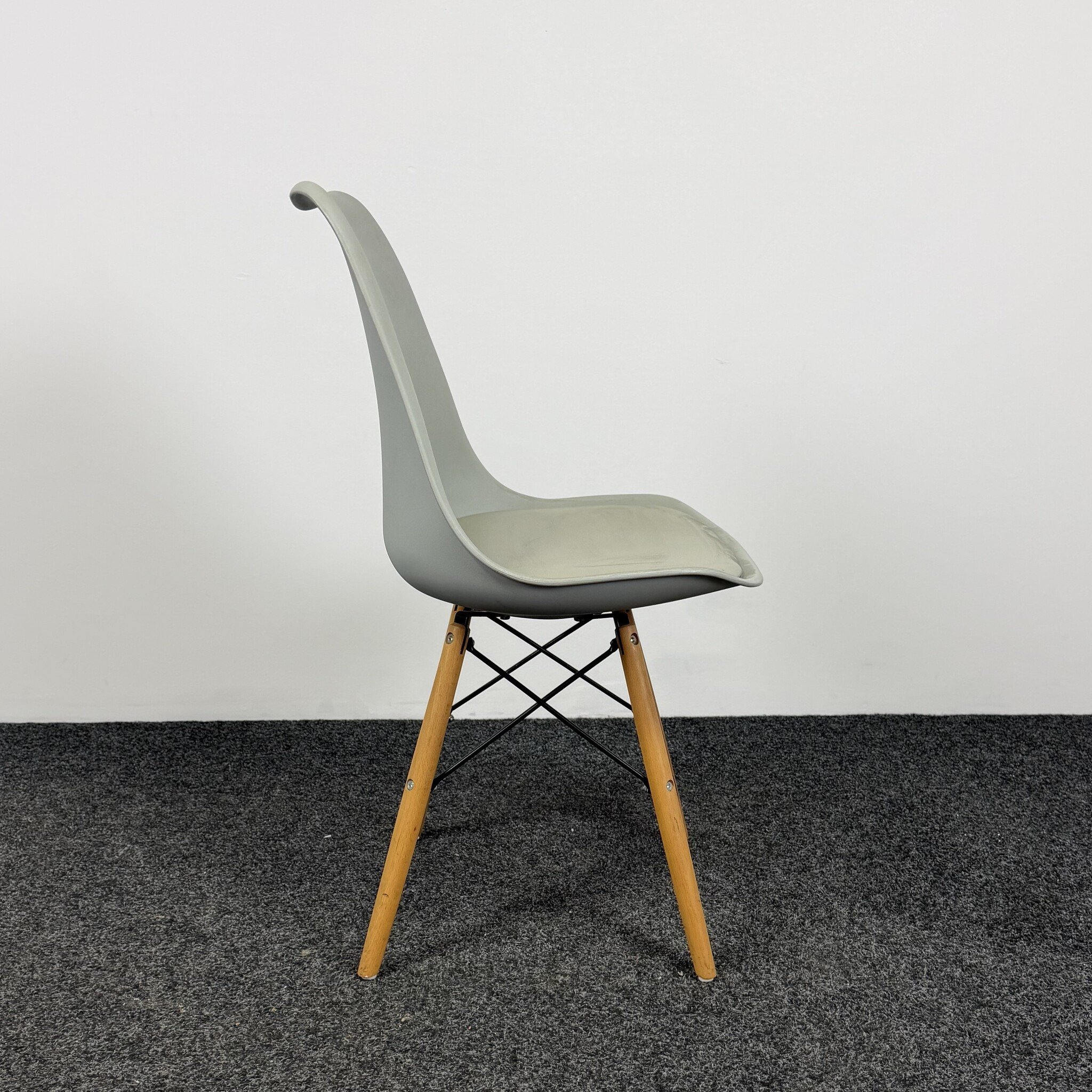 De grijze kuipstoel met houten onderstel is een comfortabele en eigentijdse zitoplossing. De kunststof kuipzitting is voorzien van een kussentje voor extra zitcomfort. Het 4-poots onderstel van hout met zwarte metalen details geeft de stoel een moderne uitstraling. Geschikt voor kantines, vergaderruimtes of wachtruimtes.