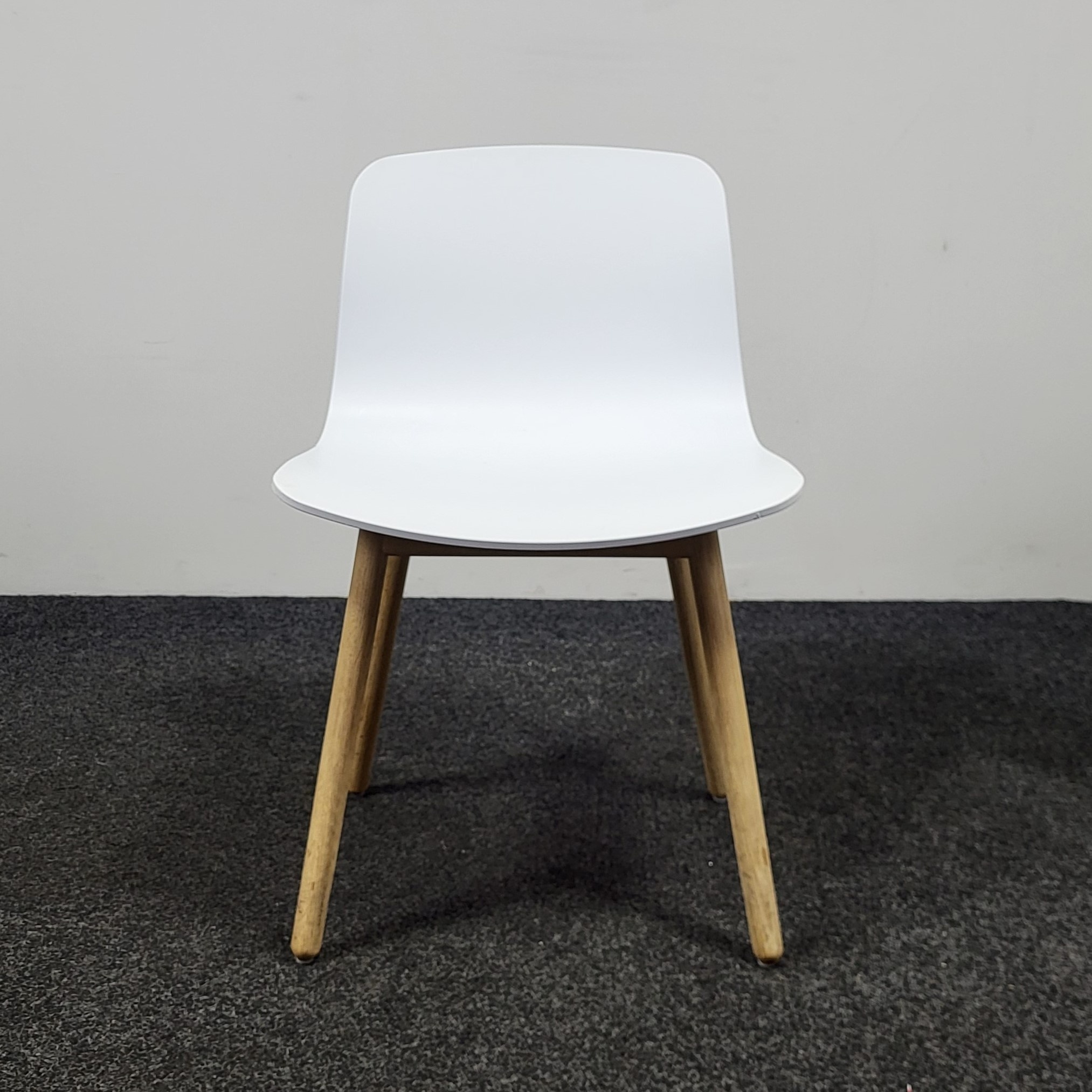 Gebruikte multifunctionele design stoel van het merk Hay. Deze multifunctionele stoel heeft een zwarte kunststof kuip zitting en een 4 poots onderstel. Het onderstel biedt u stevigheid en stabiliteit, het zitvlak en de rugleuning zijn op elkaar afgestemd zodat u comfortabel kunt zitten.
