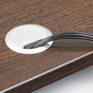 Kabeldoorvoerdop voor het netjes wegwerken van kabels door een bureaublad.