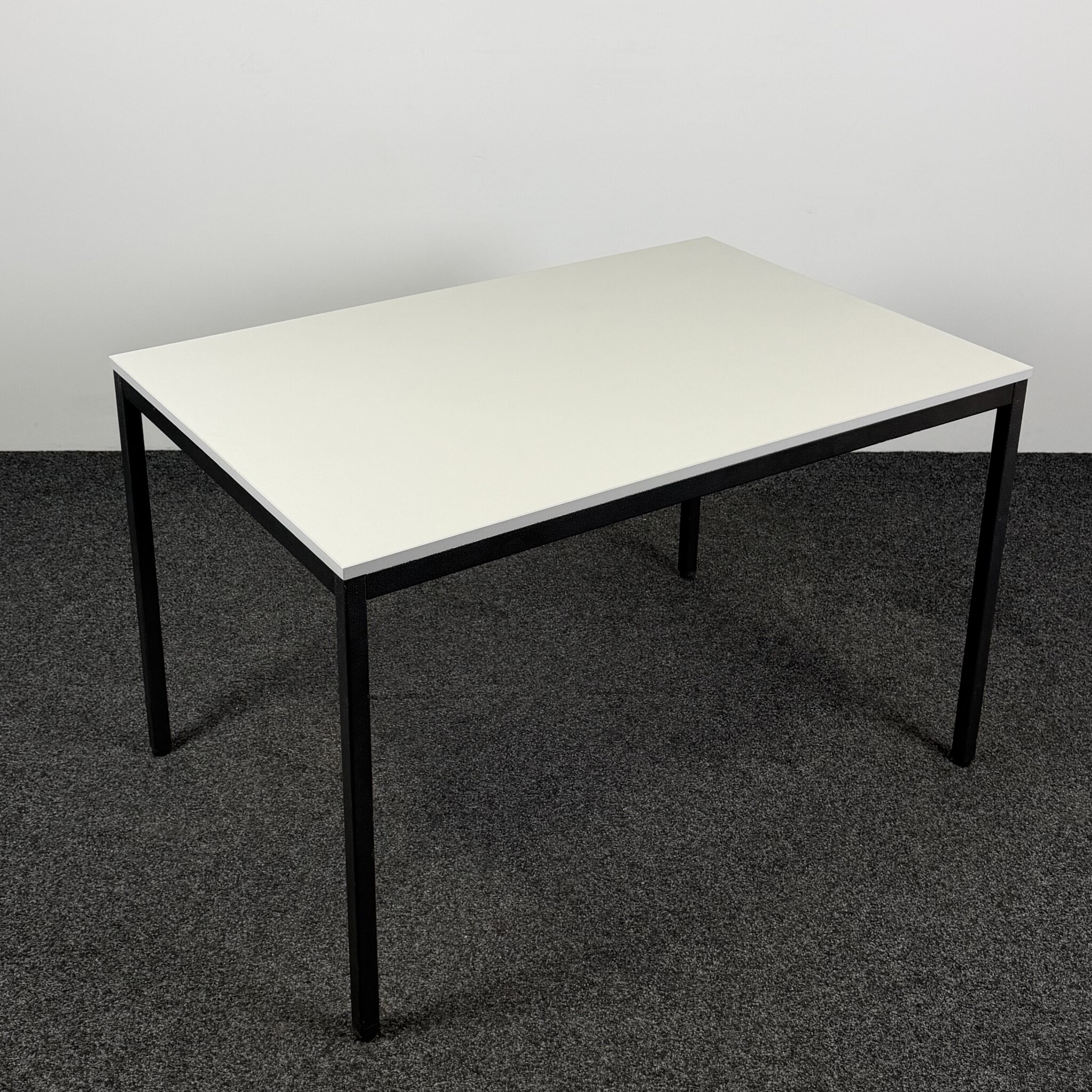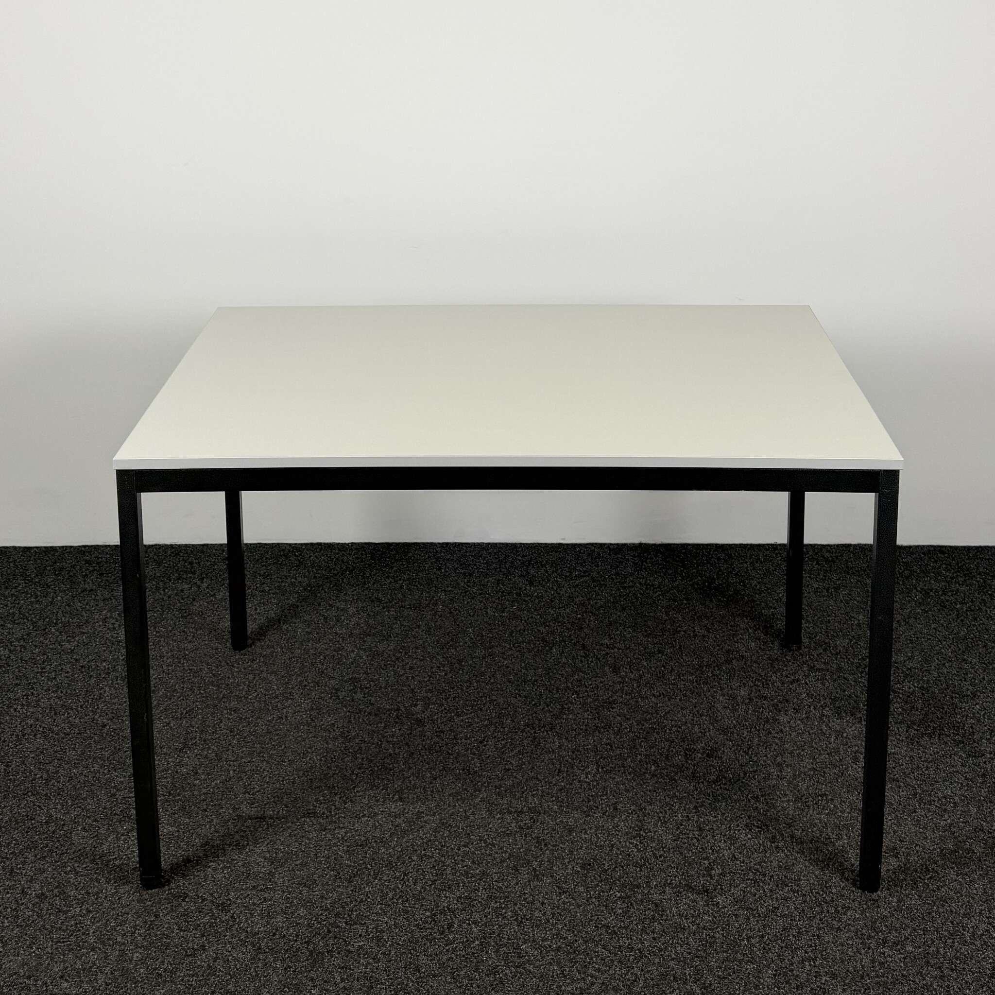 De kantinetafel 120 x 80 cm is een praktische en stijlvolle tafel voor diverse ruimtes. Het originele blad in combinatie met het zwarte stalen 4-poots onderstel geeft de tafel een moderne, tijdloze uitstraling. Dankzij de stevige constructie is deze gebruikte tafel ideaal voor kantines, pauzeruimtes of kleinere vergaderruimtes.