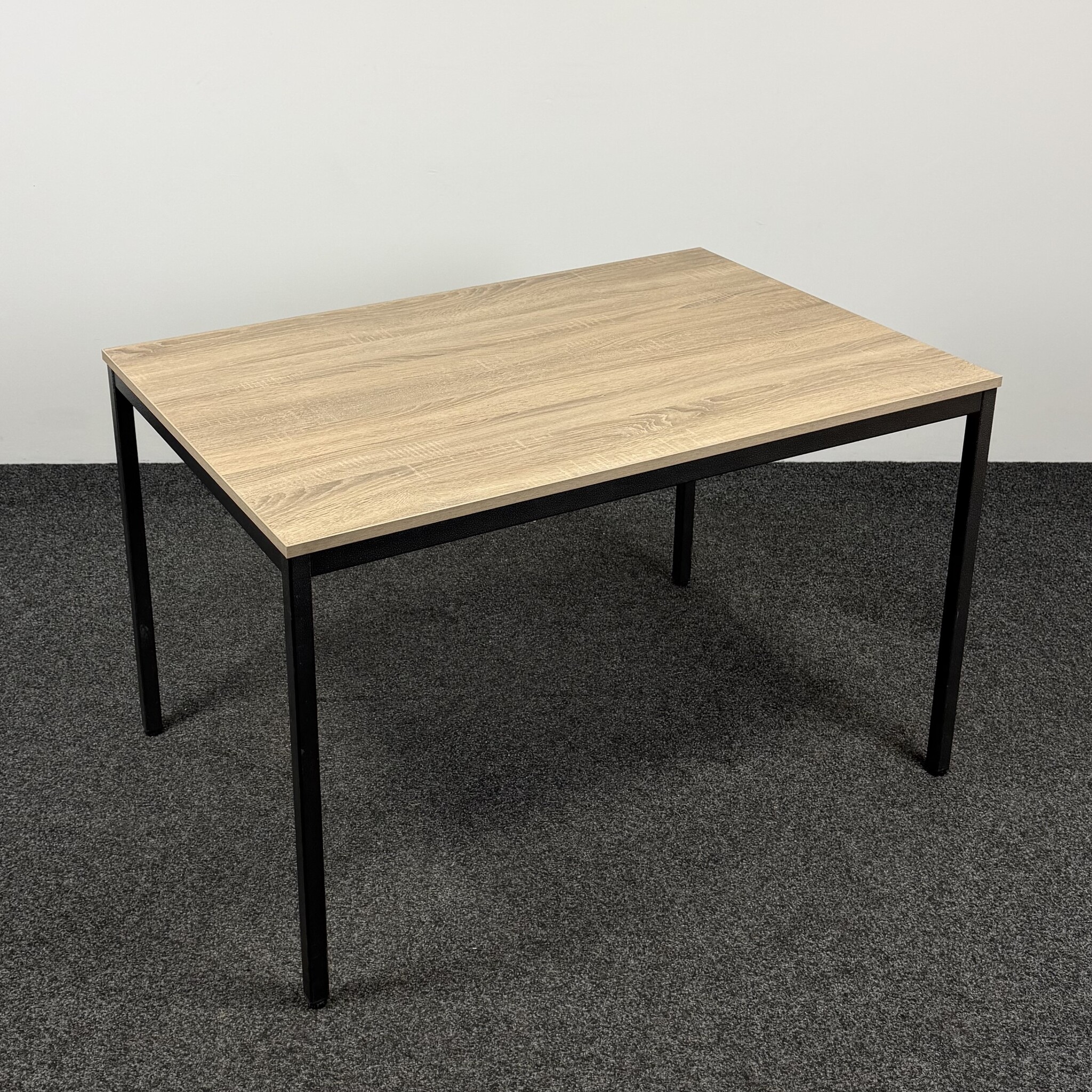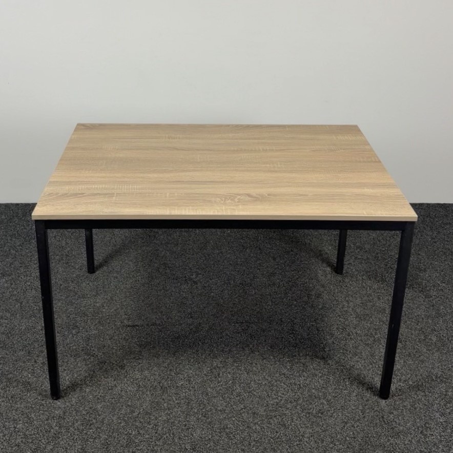 De kantinetafel 120 x 80 cm is een praktische en stijlvolle tafel voor diverse ruimtes. Het nieuwe midden eiken blad in combinatie met het zwarte stalen 4-poots onderstel geeft de tafel een moderne, tijdloze uitstraling. Dankzij de stevige constructie is deze refurbished tafel ideaal voor kantines, pauzeruimtes of kleinere vergaderruimtes.