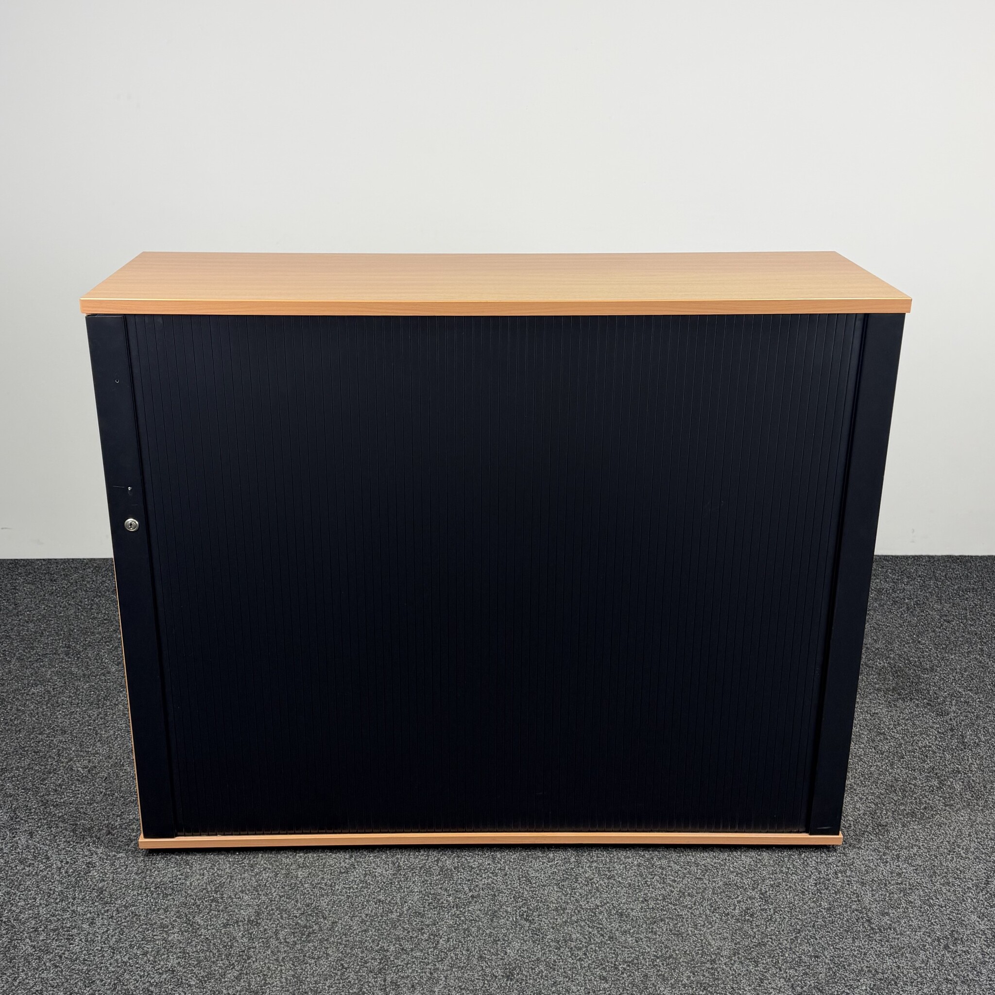 De König + Neurath roldeurkast (B) is een praktische en stijlvolle opbergoplossing voor kantoor of archiefruimte. De houten ombouw met zwarte roldeuren geven de kast een moderne uitstraling. Voorzien van 3 niveaus met 2 in hoogte verstelbare legborden. Met een formaat van 107 x 135 x 42 cm is dit een ruime, gebruikte archiefkast.