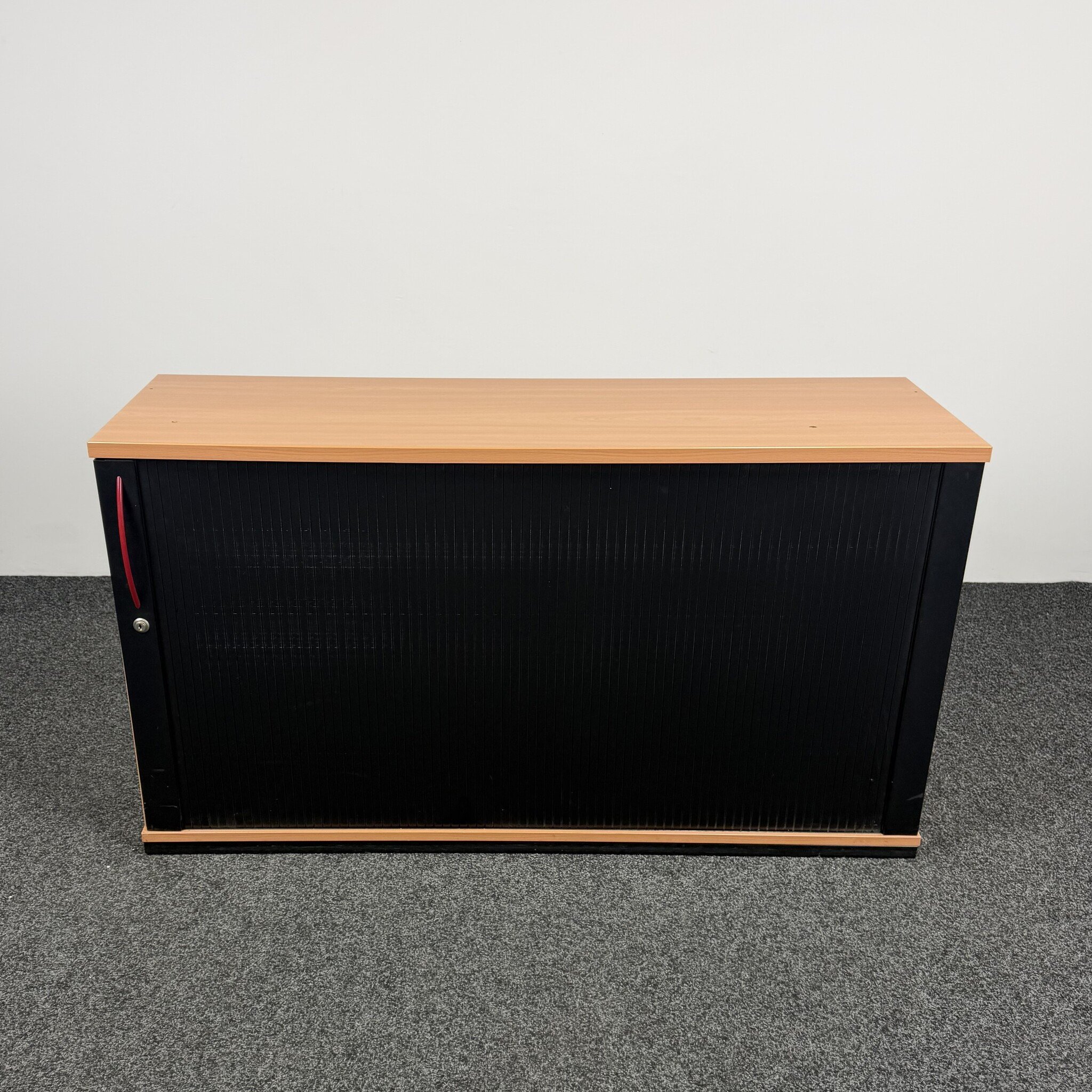 De König + Neurath roldeurkast is een stijlvolle en praktische archiefkast voor iedere kantoorruimte. De houten ombouw in combinatie met zwarte roldeuren en een opvallende rode deurhendel geeft de kast een eigentijdse uitstraling. Ideaal voor het netjes opbergen van dossiers, ordners en kantoorbenodigdheden. Dankzij het compacte formaat van 75 x 135 x 42 cm past deze gebruikte kast eenvoudig in diverse werk- en archiefruimtes.