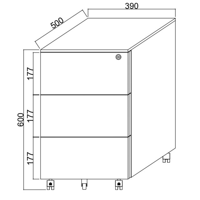 Ladeblok Premium met 3 gelijke lades is een praktische en stijlvolle opbergoplossing voor onder elk bureau. Verkrijgbaar in de kleuren zwart, grijs en wit, waardoor het eenvoudig te combineren is met diverse kantoorstijlen. Dit verrijdbare ladeblok is afsluitbaar met een unieke sleutel en biedt voldoende ruimte voor al je kantoorbenodigdheden.