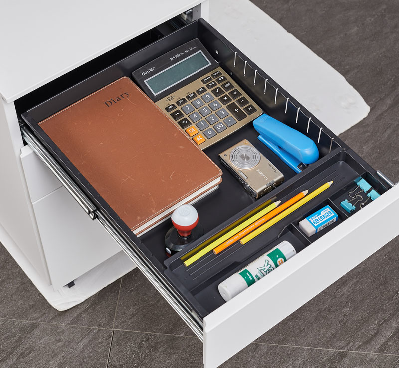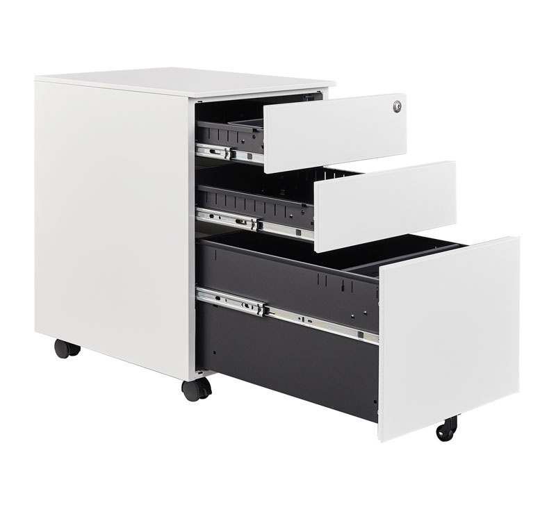Ladeblok Premium met 3 laden is een praktische en stijlvolle opbergoplossing voor onder elk bureau. De ladekast is voorzien van 2 materiaallades en 1 grote multifunctionele lade. De multifunctionele grote lade kan vanwege de dichte zijkant zowel voor hangmappen als materialen worden gebruikt. De bovenste lade is voorzien van een pennenbakje.