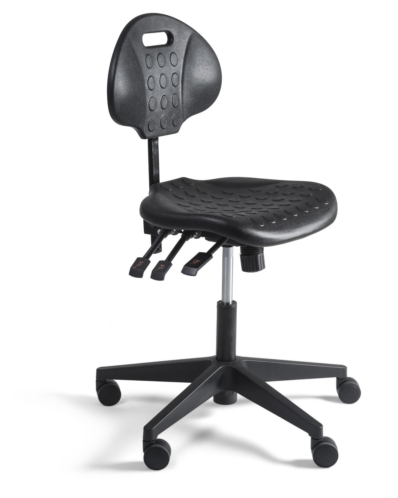 De Lage Werkstoel met PU zitting biedt ondersteuning bij werkzaamheden waarbij afwisseling tussen zitten en staan gewenst is. De werkstoel ontlast benen en rug en draagt bij aan een comfortabele werkhouding. De onderhoudsvriendelijke PU zitting is geschikt voor dagelijks gebruik. Dankzij de verstelbare zithoogte, de in hoogte verstelbare rugleuning en de rug- en zithoekverstelling is de stoel eenvoudig aan te passen. Leverbaar met een zwart kunststof of gepolijst aluminium onderstel en voorzien van multifunctionele wielen.