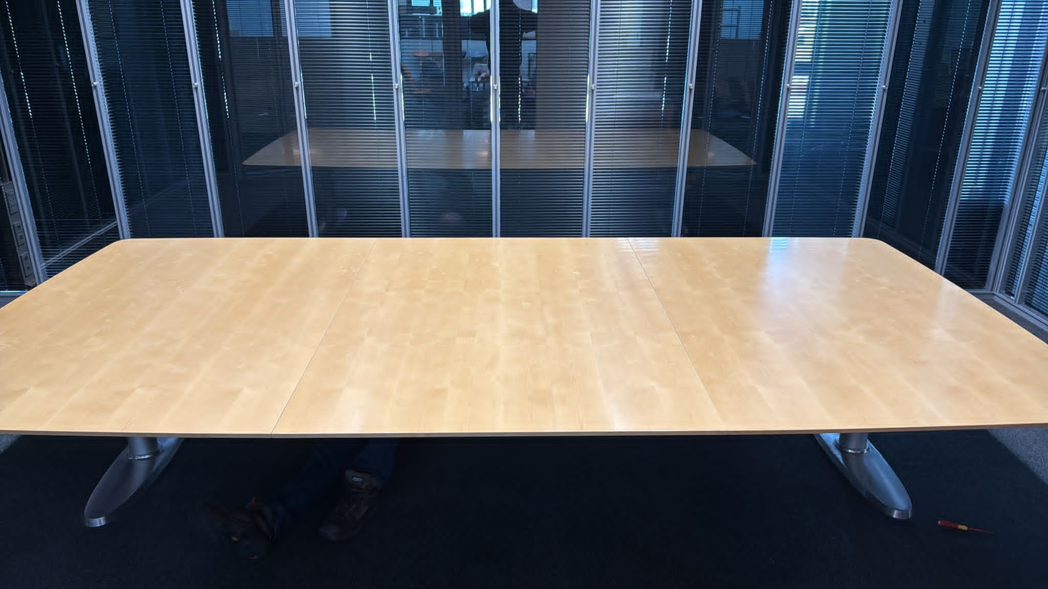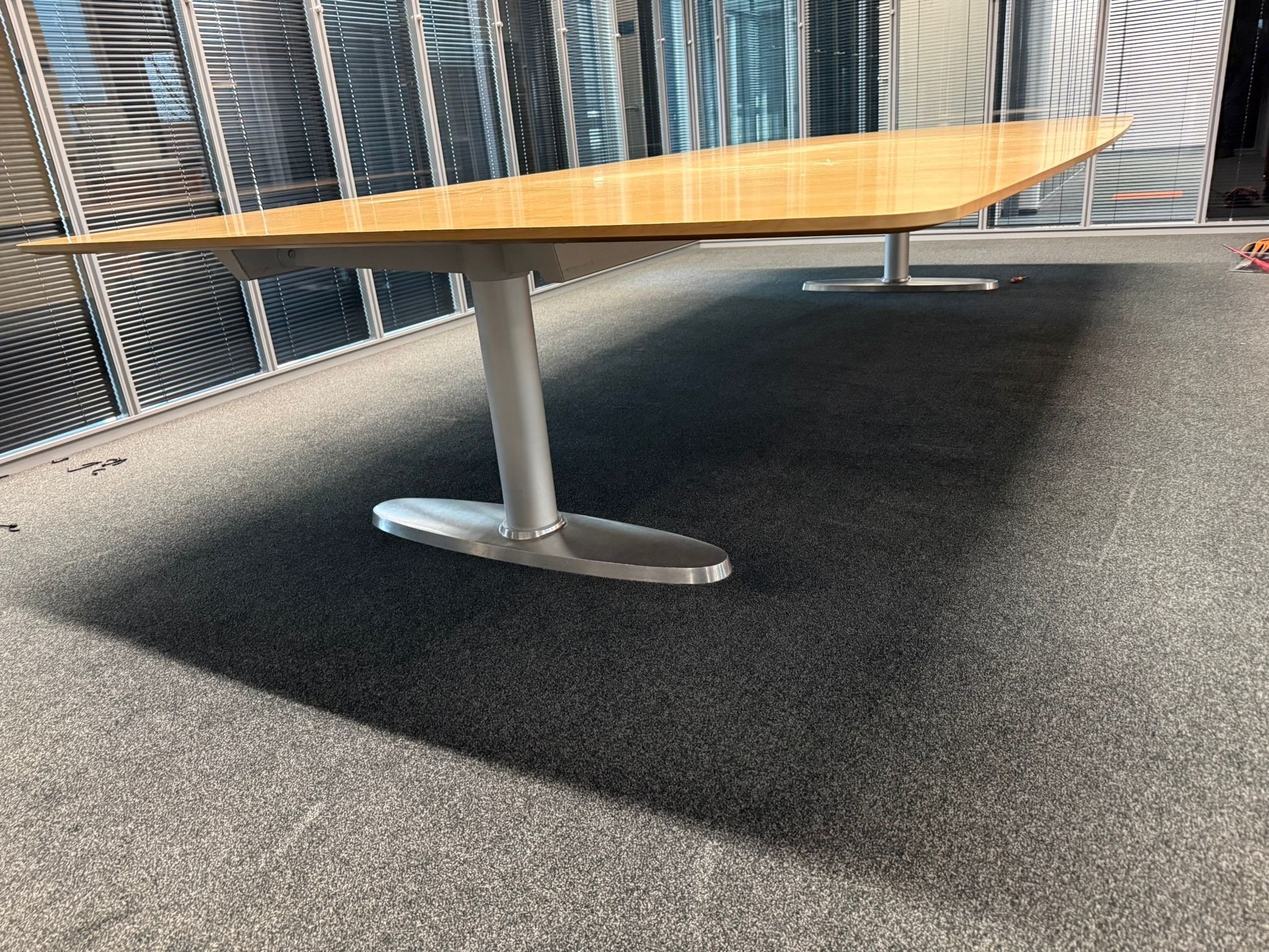 De Lammhults vergadertafel van 400 x 200 cm biedt een ruime werkplek voor grote vergader- en overlegruimtes. Het lichte eiken blad in combinatie met het grijze onderstel geeft de tafel een moderne en professionele uitstraling. Deze gebruikte tafel is ideaal voor intensief kantoorgebruik en zorgt voor comfort en functionaliteit tijdens lange vergaderingen.