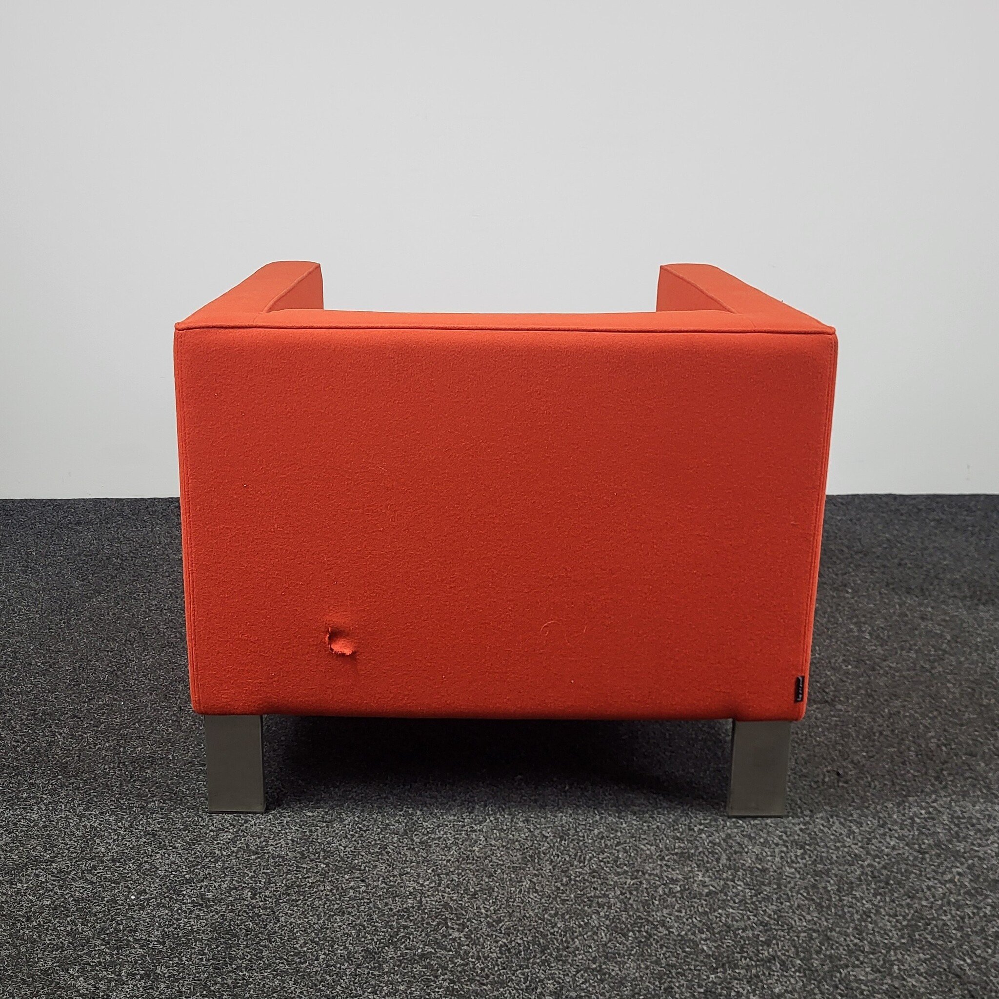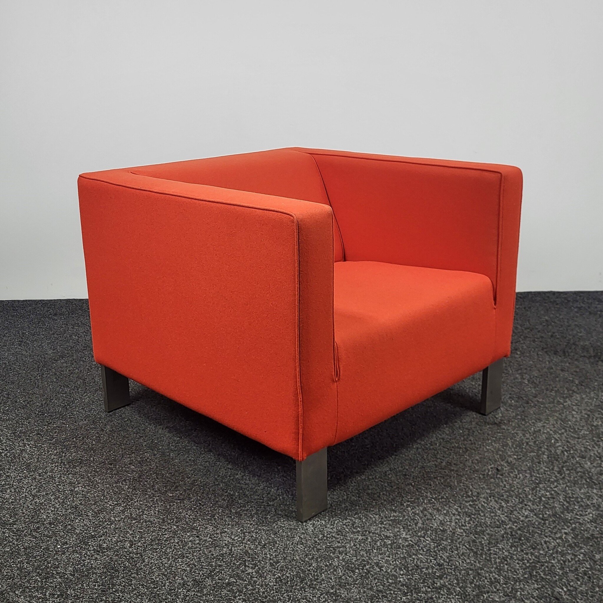 De Lensvelt fauteuil uit de Lekker Strak-collectie is een comfortabele en karaktervolle zitplek. Ontworpen door Gerard van den Berg, met rode stoffen bekleding en een chroomkleurig 4-poot onderstel. Deze moderne fauteuil combineert minimalistisch design met een warme uitstraling. Een stijlvolle keuze voor ontvangst- of wachtruimtes.