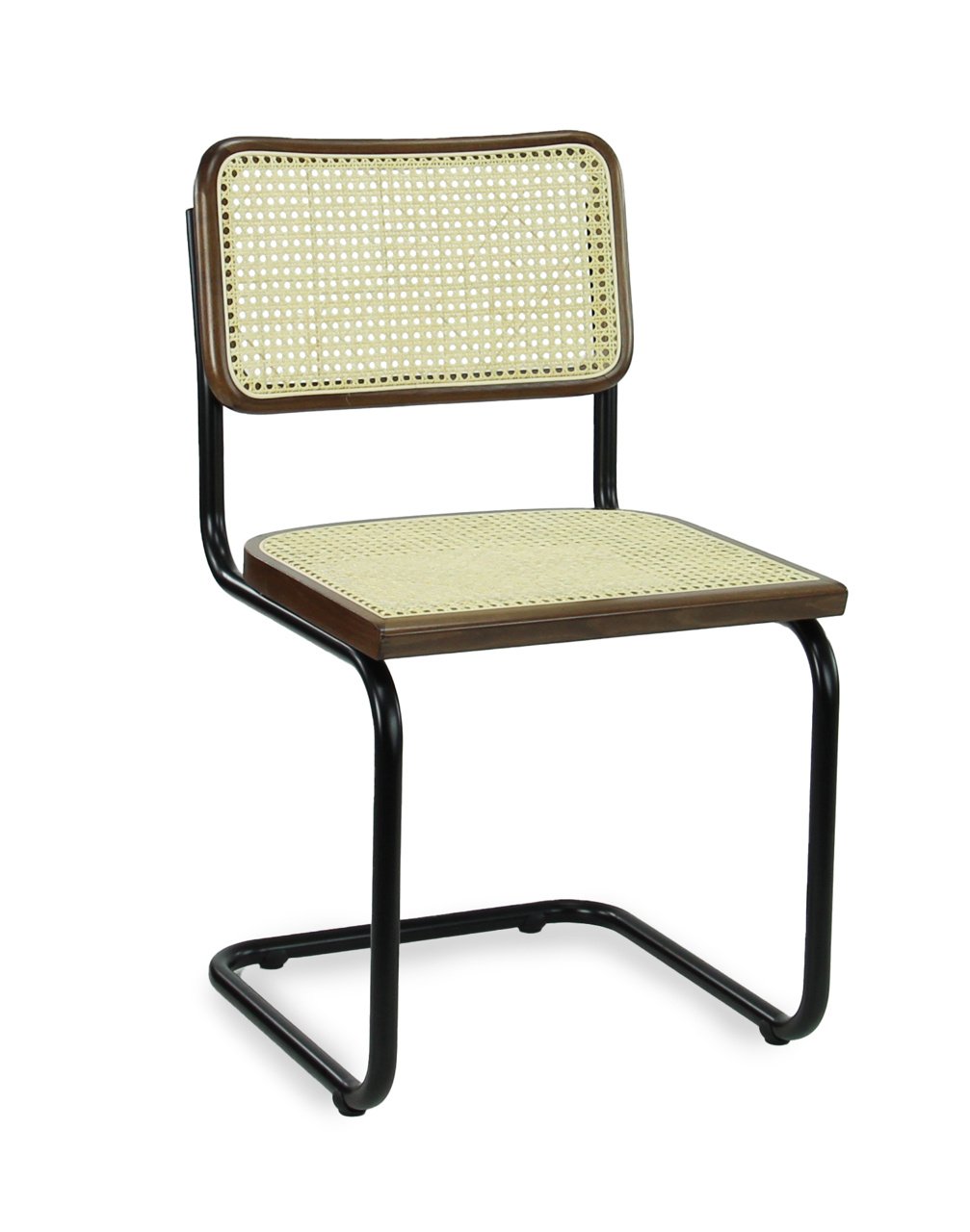 Nieuwe multifunctionele stoel. De LK 02 Francesca stoel heeft een mat zwart sledeframe een walnoot rand van de zitting en rugleuning. De zitting en rug zijn met echte webbing bespannen waardoor de stoel een klassieke uitstraling heeft die supermodern is in deze tijd. De stoel is geschikt voor huiselijke en zakelijke interieurs.