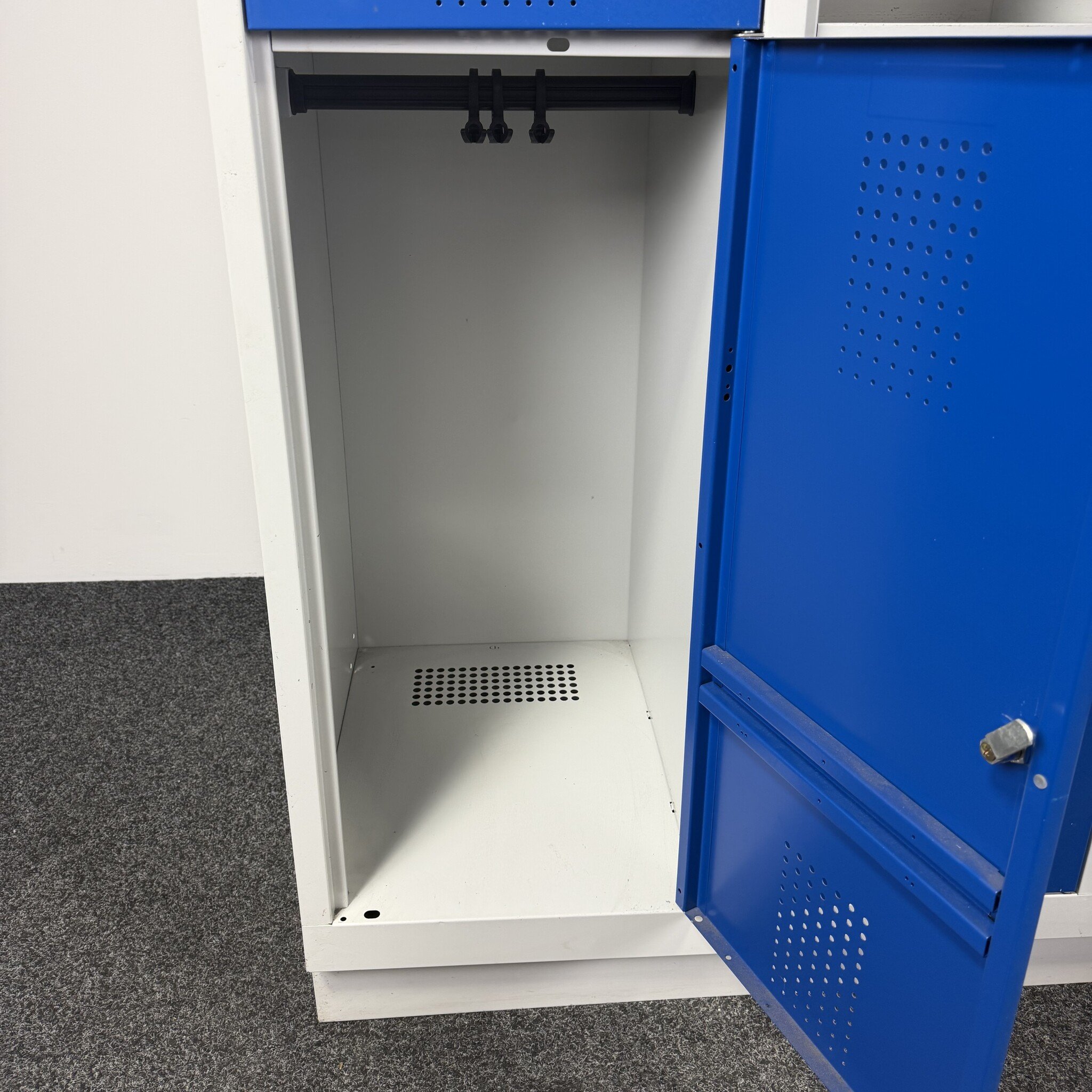 - De lockers zijn voorzien van ophanghaken en ventilatiegaten