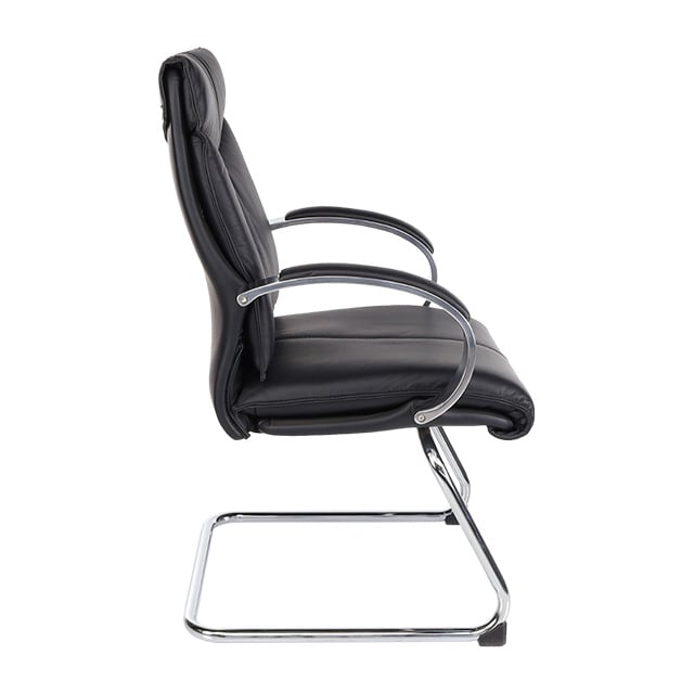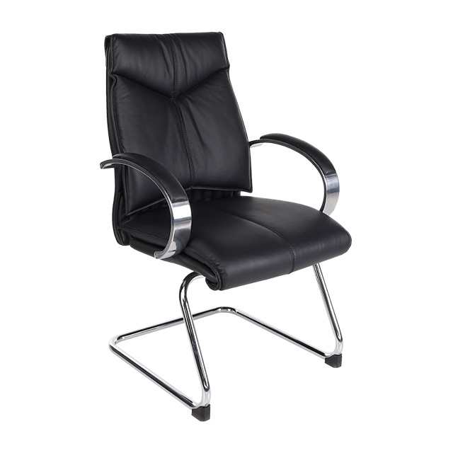 De Luxe vergaderstoel President is een comfortabele en representatieve directiestoel, uitgevoerd in zwart leder. De lederen zitting en rugleuning zorgen voor prettig zitcomfort tijdens vergaderingen. Het verchroomde sledeframe en de armleggers met lederen opdek geven de stoel een luxe en professionele uitstraling. Een stijlvolle keuze voor vergader- en directieruimtes.