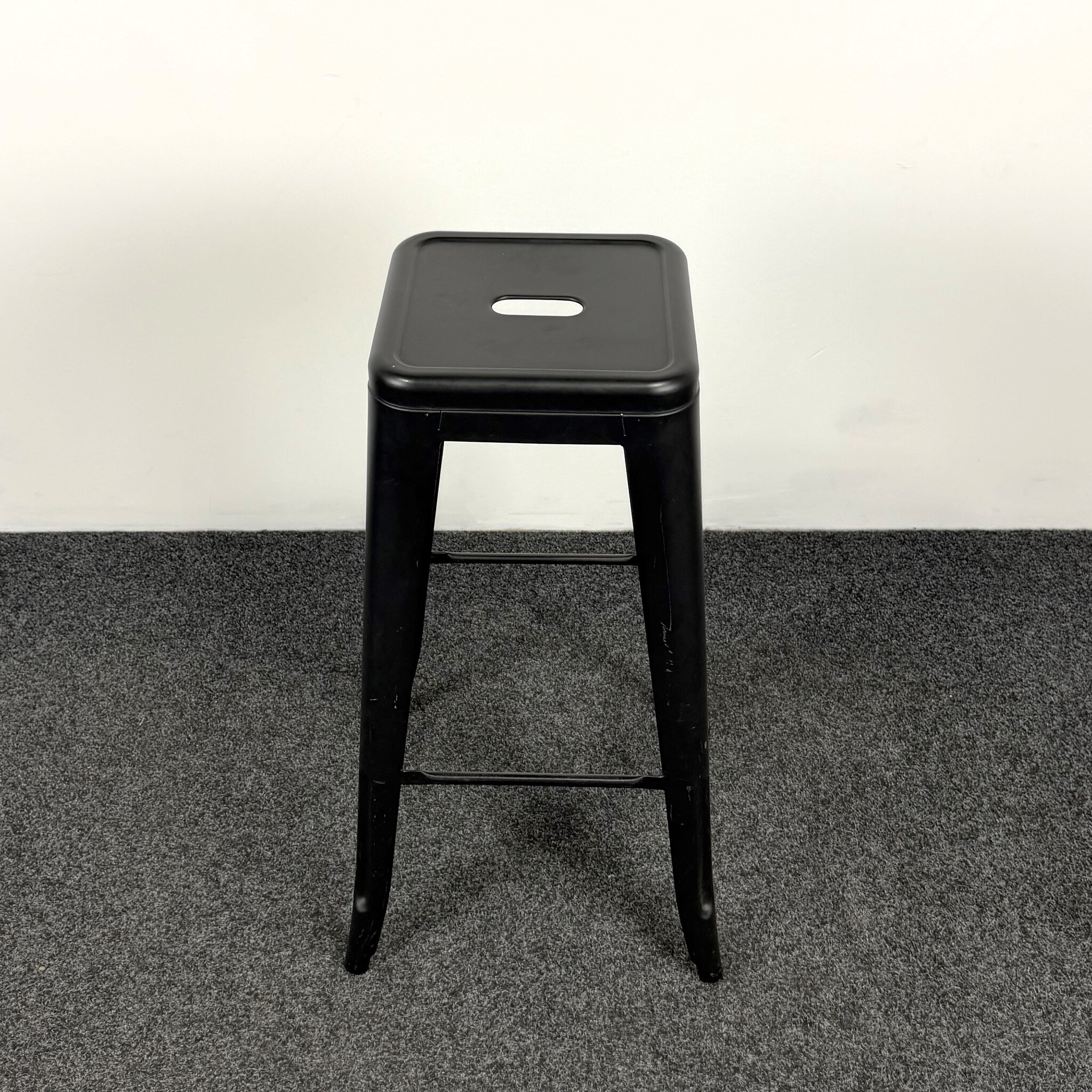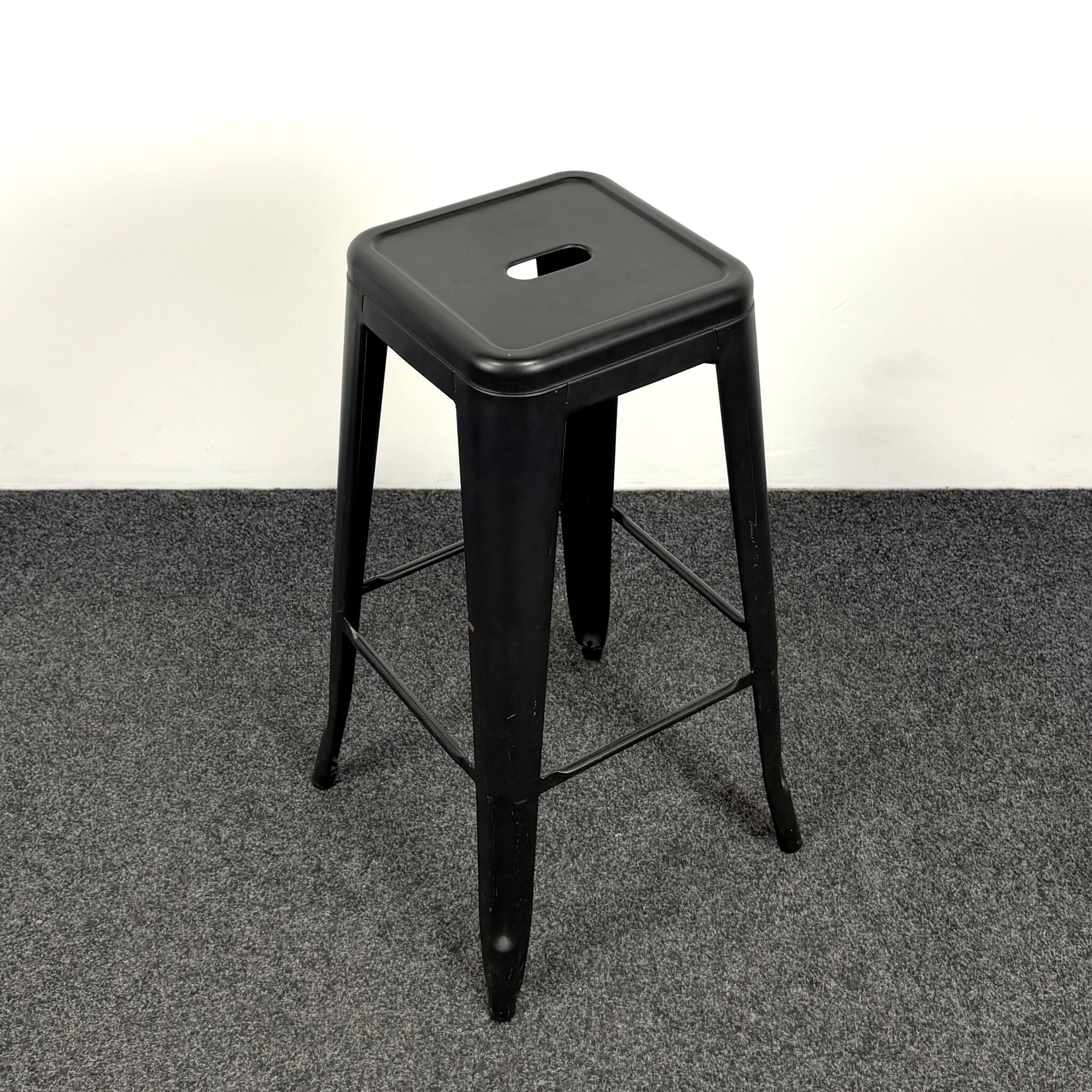 Deze metalen barkruk in zwart is een stevige en praktische zitplaats voor diverse ruimtes. Het stalen frame zorgt voor een robuuste uitstraling en langdurig gebruik. De barkruk is voorzien van een voetensteun voor extra comfort en is geschikt voor gebruik aan een bartafel of statafel.
