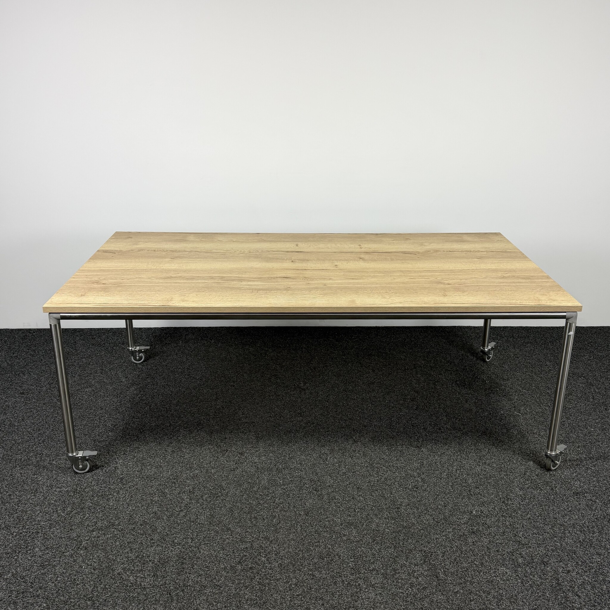 De refurbished Ahrend Move It tafel van 200 x 100 cm is een flexibele en duurzame werk- of vergadertafel. Het verrijdbare onderstel met geremde wielen en gepolijst aluminium afwerking zorgt voor is extra stevig. Het nieuwe blad is verkrijgbaar in midden eiken, natuur eiken, donker eiken of licht eiken. Een praktische en stijlvolle oplossing voor moderne kantooromgevingen.