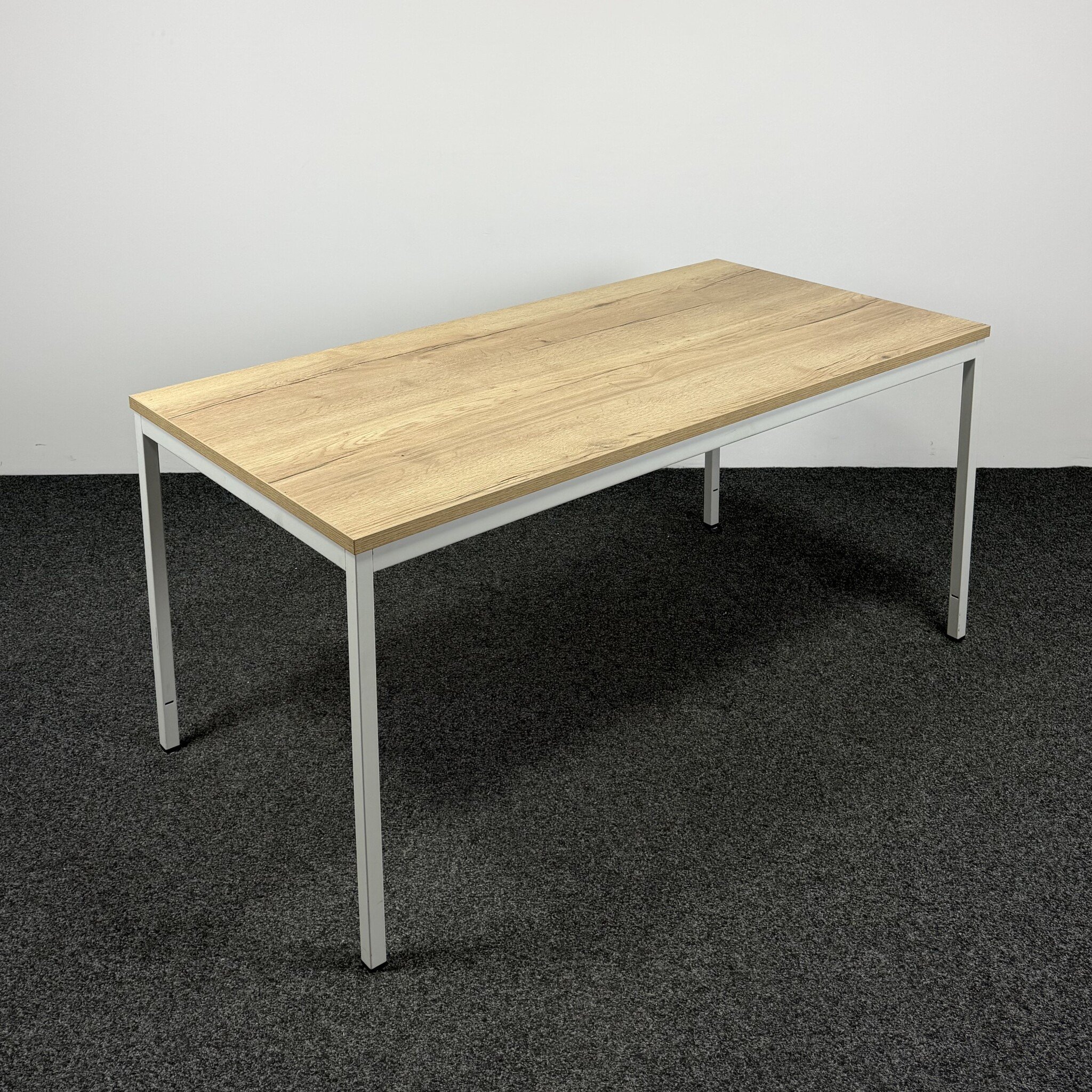 Deze refurbished kantinetafel van 160 x 80 cm is een praktische en duurzame keuze voor iedere ruimte. Het lichtgrijze onderstel biedt een stevige basis en het nieuwe blad is naar wens samen te stellen. Dankzij de vaste hoogte is deze tafel geschikt voor kantines, vergaderruimtes of werkplekken.