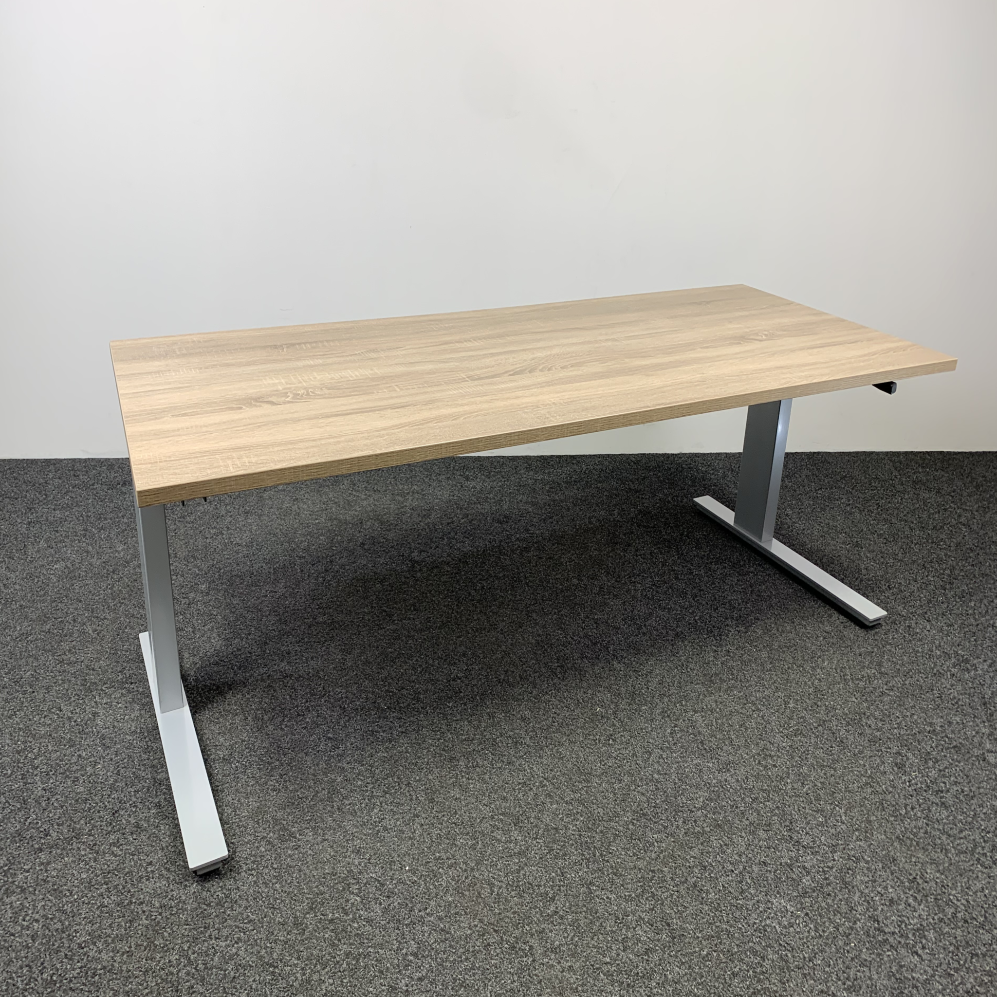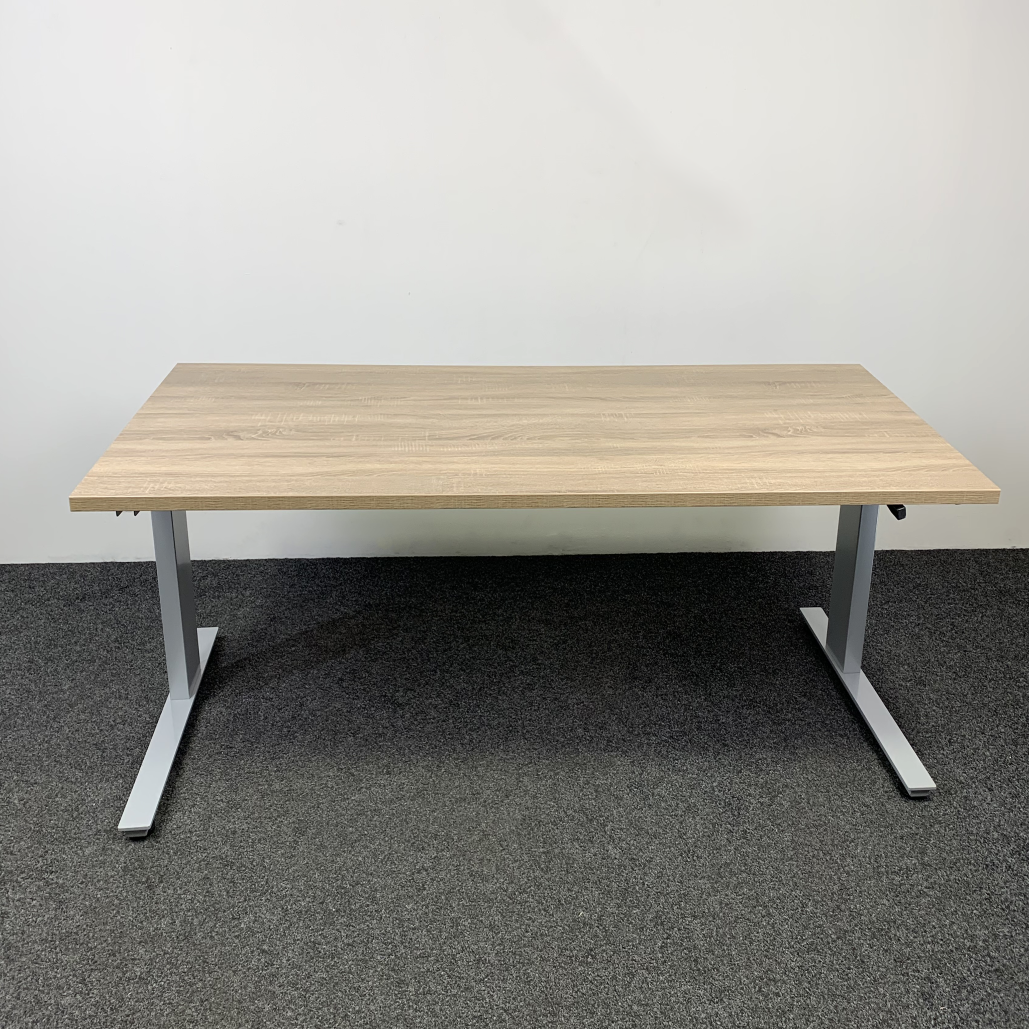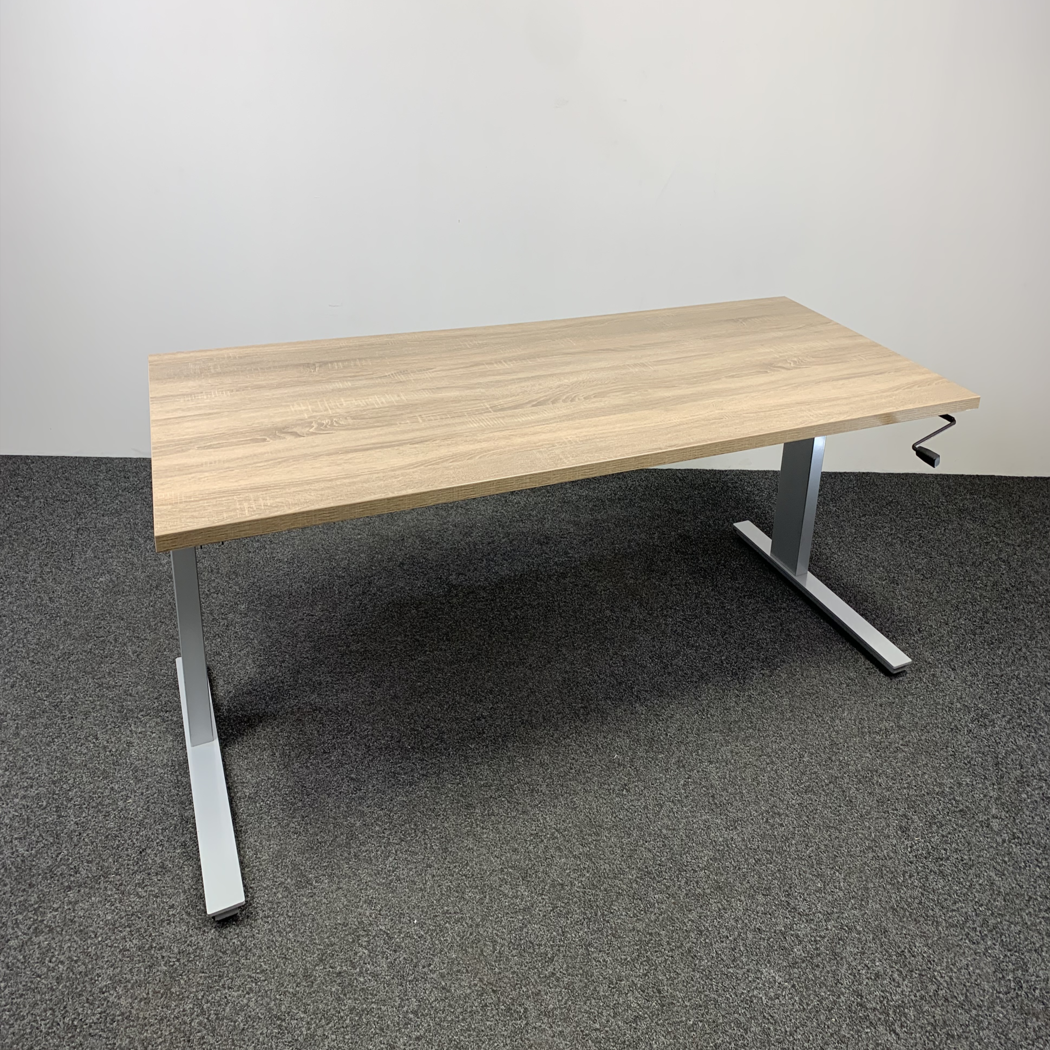 Refurbished slingerbureau met een grijs onderstel en een nieuw blad naar keuze. Dit bureau is in hoogte verstelbaar door middel van een slinger. U kunt het bureau bestellen in verschillende afmetingen.