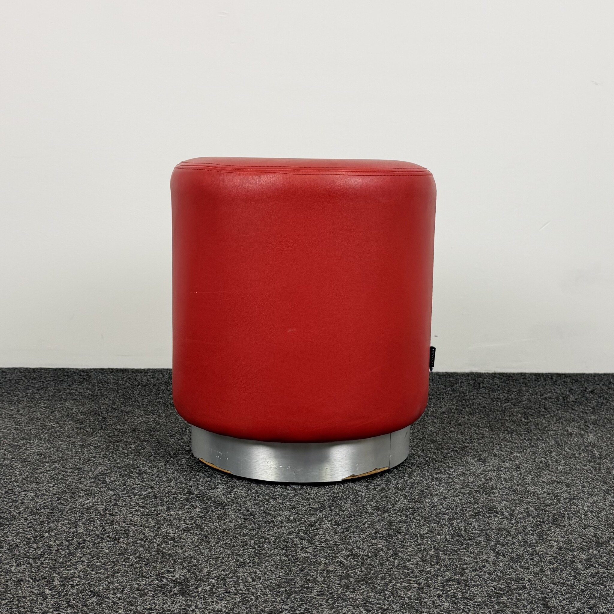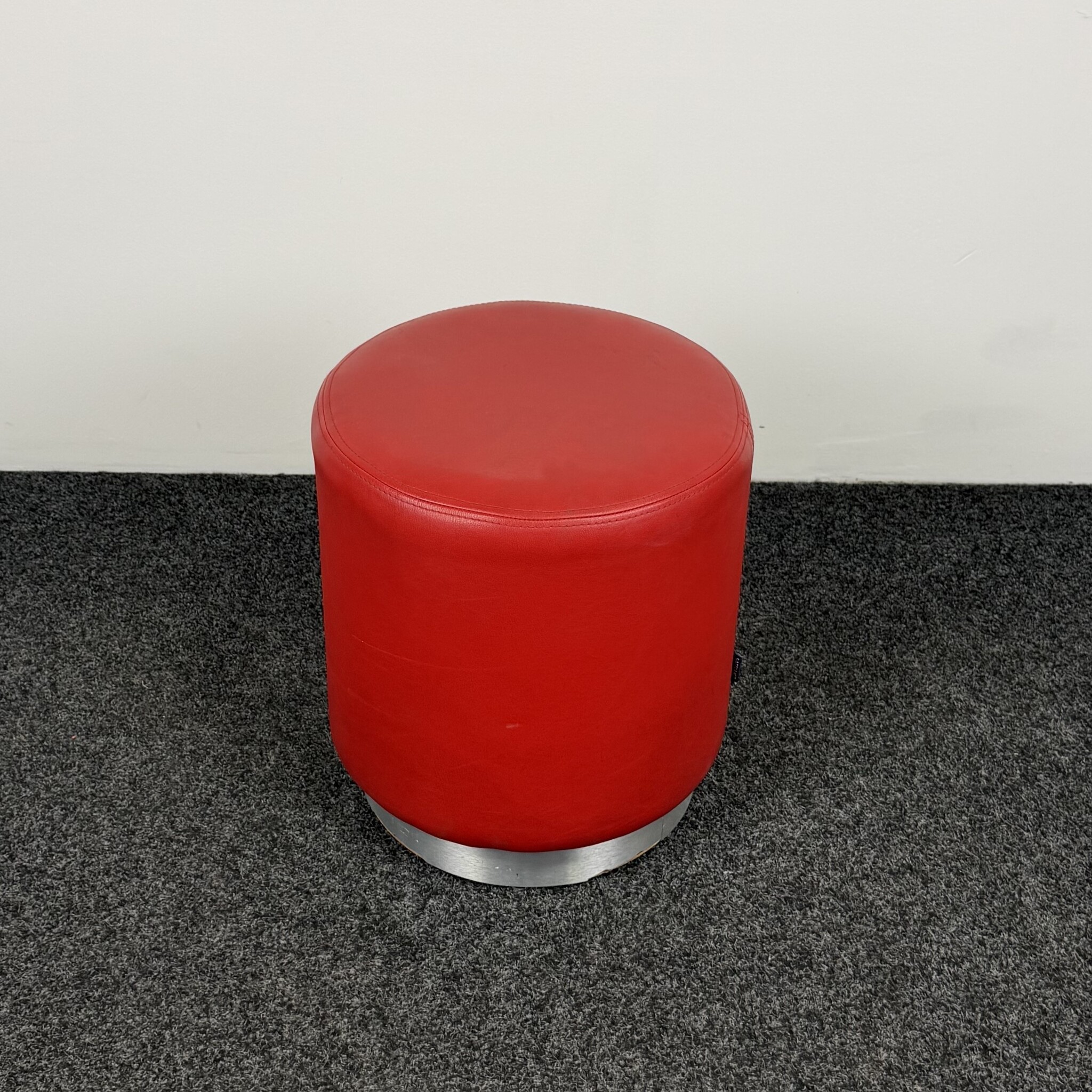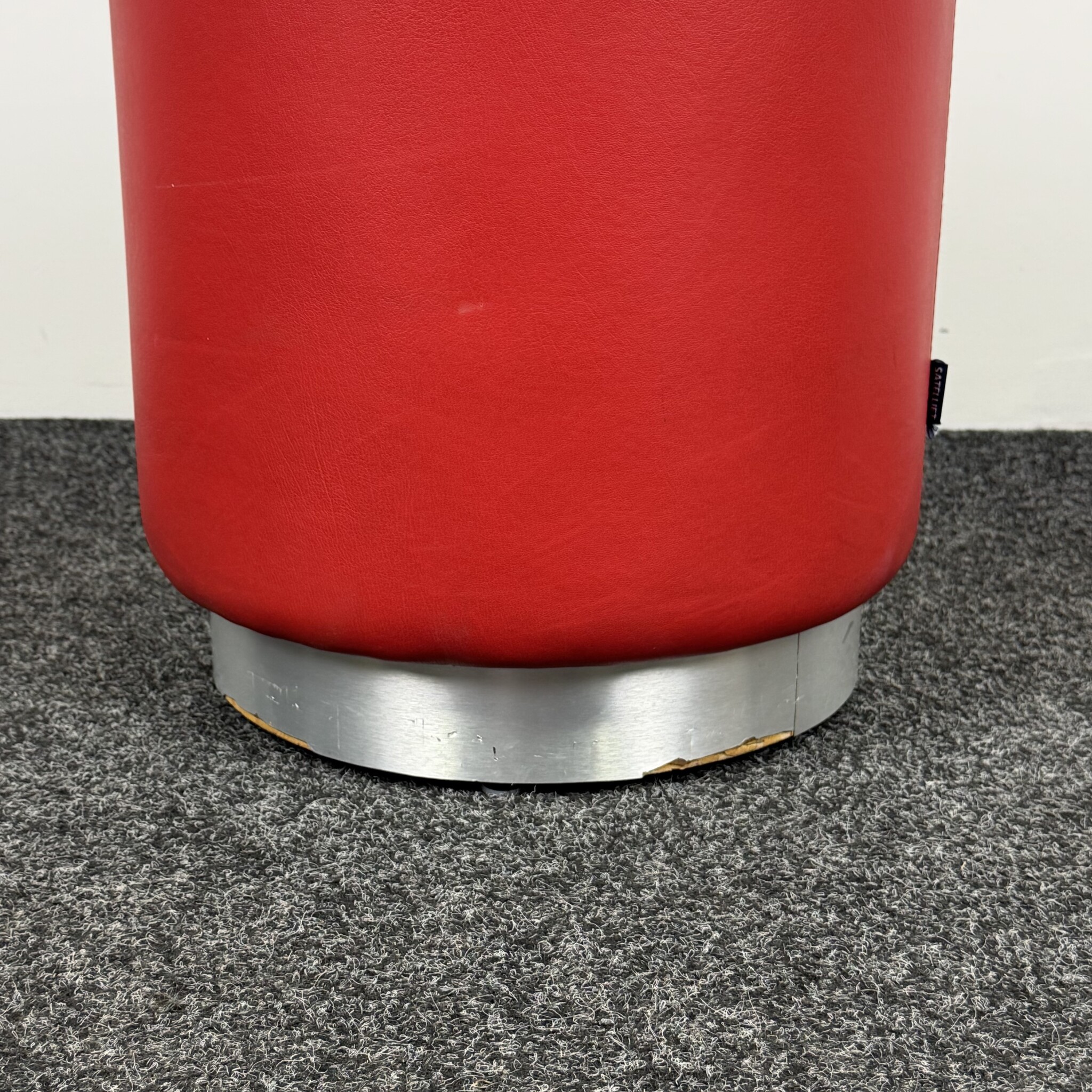 Deze ronde poef van het merk Satelliet is een compacte en stijlvolle toevoeging aan elk interieur. Uitgevoerd in rood met (kunst)leren bekleding voor een strakke uitstraling. Dankzij het formaat eenvoudig te verplaatsen en veelzijdig in gebruik. Ideaal als extra zitplek in ontvangstruimtes of kantoren.