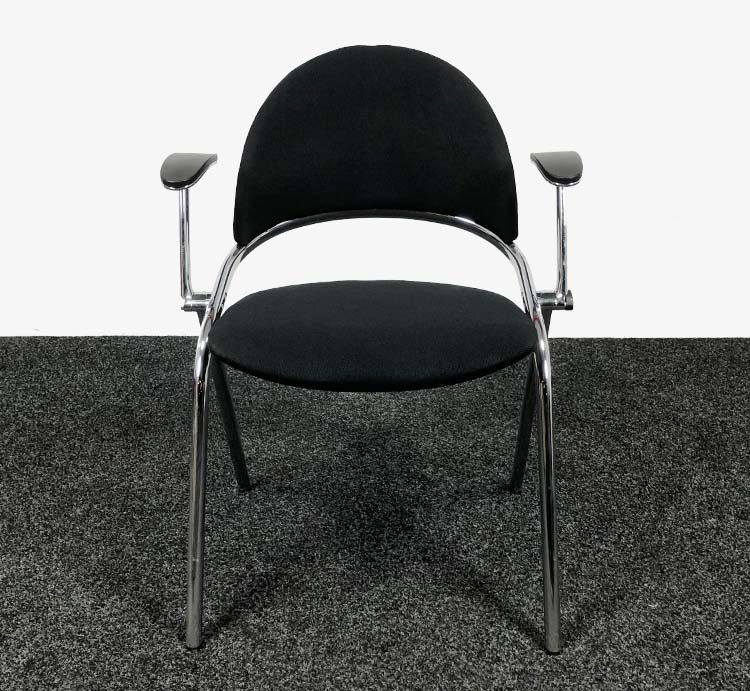 De refurbished Sedus Get Together vergaderstoel met vaste armleggers is een stevige en praktische zitoplossing voor vergader- en conferentieruimtes. De stoel is opnieuw gestoffeerd met slijtvaste zwarte bekleding en heeft een chroomkleurig frame met vaste armleuningen. Dankzij het stapelbare ontwerp is deze stoel ideaal voor flexibel gebruik in vergaderzalen of trainingsruimtes.