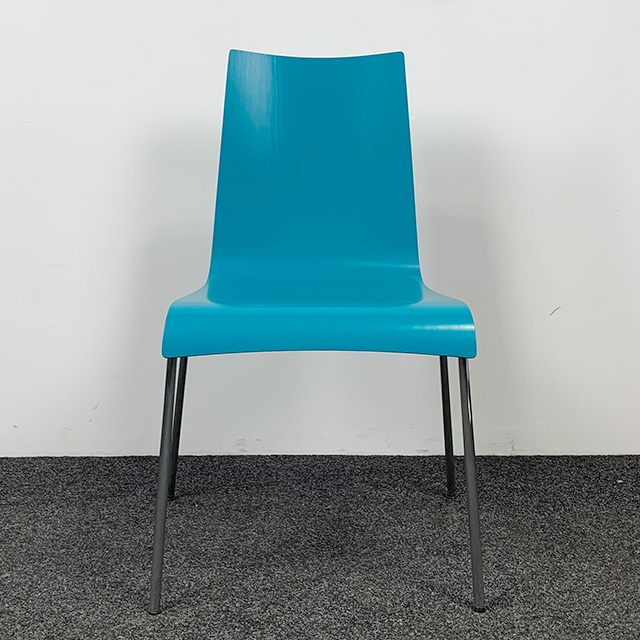 Gebruikte multifunctionele stoel van het merk van der Sluis. Deze stevige stoel heeft een 4 poot onderstel, een houten zitting en is stapelbaar. De stoel heeft enkele gebruikssporen kan echter nog prima een ronde mee.