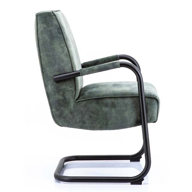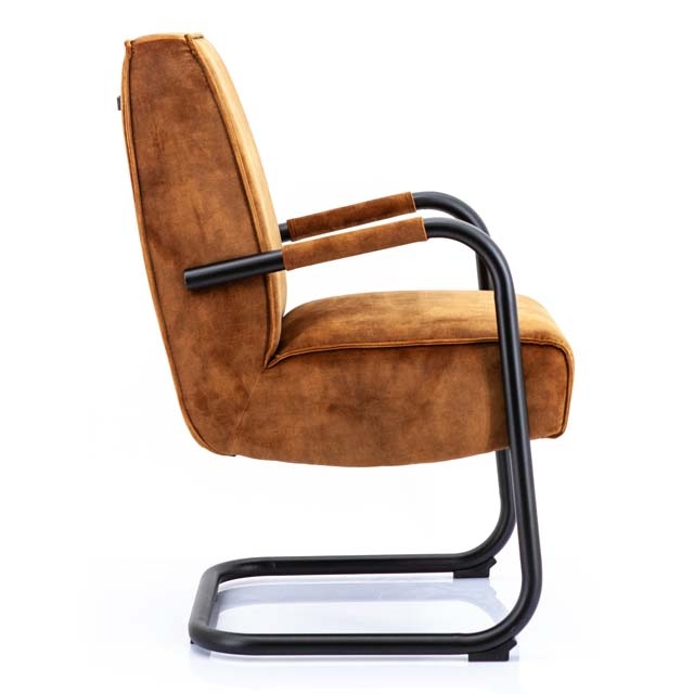 De luxe vergaderstoel Dust biedt stevigheid en comfort in een stijlvol design. Het slede-onderstel zorgt voor optimale ondersteuning tijdens het zitten en de handgreep aan de rugleuning maakt het eenvoudig de stoel te verplaatsen. De 100% velours polyester bekleding is vlek- en vochtafstotend en verkrijgbaar in drie trendy kleuren: cognac, antraciet en hunter groen. Een elegante en comfortabele keuze voor vergaderruimtes.
