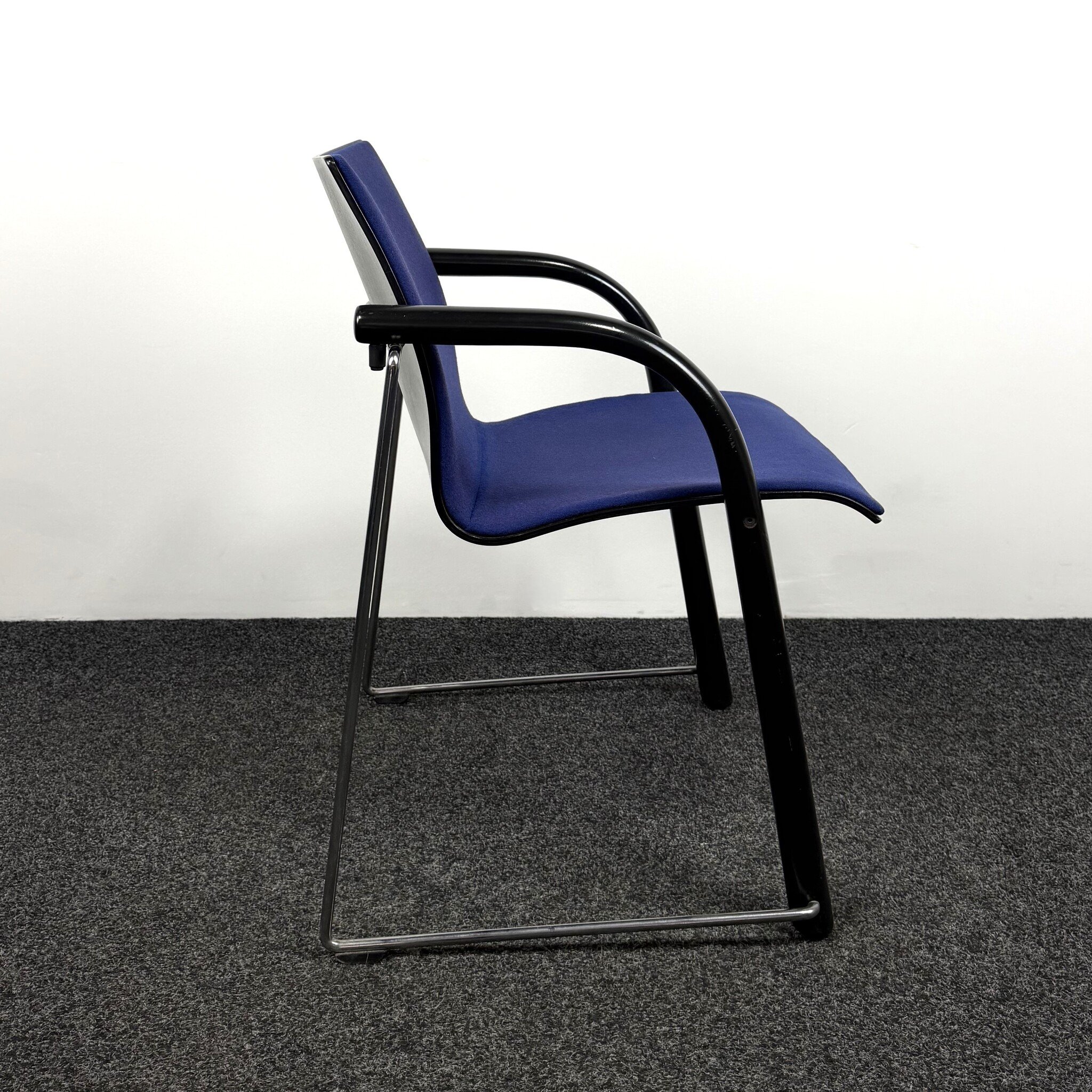 De Thonet S320 vergaderstoel is een stijlvolle en praktische stoel, ontworpen door Wulf Schneider. Uitgevoerd met een blauwe gestoffeerde zitting en een zwart stalen sledeframe. Stapelbaar en daardoor eenvoudig op te bergen. Een comfortabele keuze voor vergader- of conferentieruimtes.