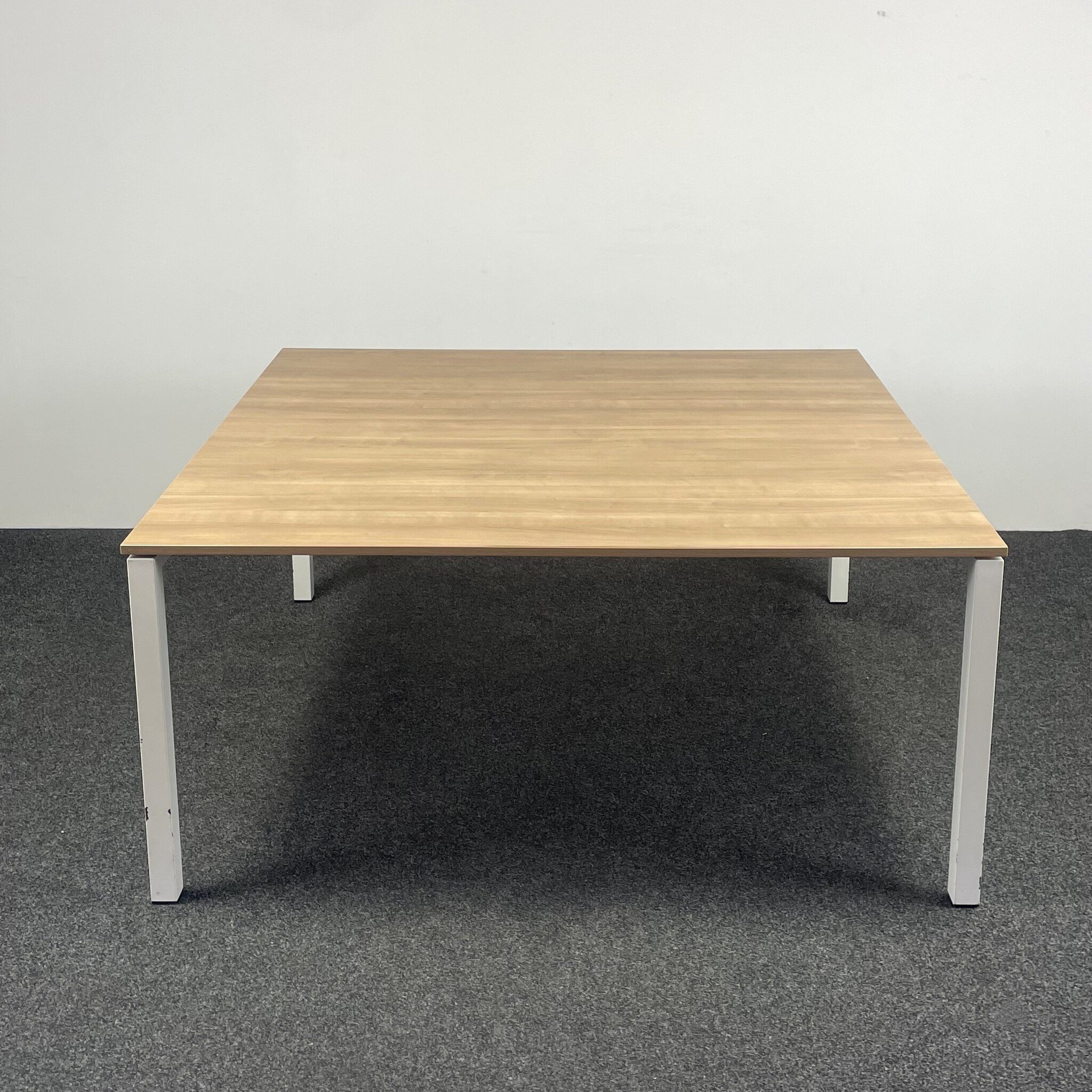 Deze vierkante vergadertafel met Havana blad en wit onderstel is stevig en stijlvol. De royale afmetingen van 160 x 160 cm bieden volop ruimte voor overleg of samenwerkingen. Ideaal voor vergaderruimtes of creatieve werkplekken.