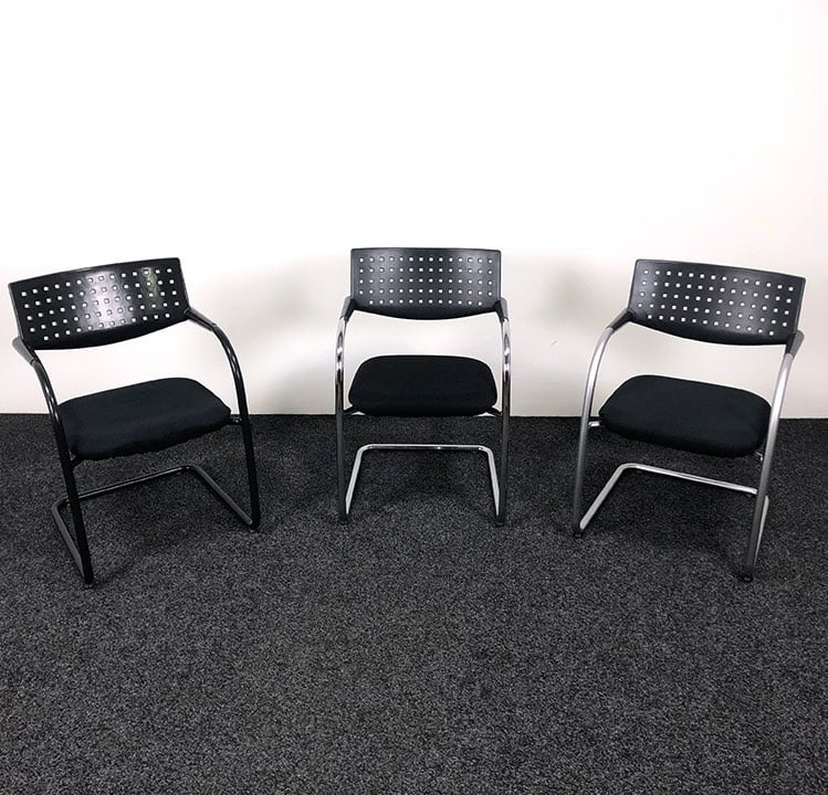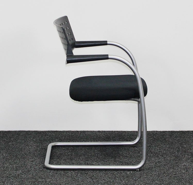 De vorm en constructie van het staalbuisframe maken deze Vitra Visavis conferentie comfortabel. De vrij hangende zitting veert iets mee en reageert flexibel op de bewegingen van het lichaam. De Visavis is voorzien van geïntegreerde armleuningen.