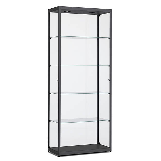 Deze vitrinekast is ideaal voor het presenteren van producten, trofeeën of andere waardevolle items. De vitrinekast is voorzien van vier legborden en is beschikbaar in 2 kleuren.
